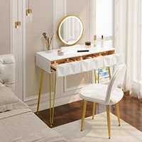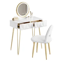 1SET Vanity Makeup Table Girls Women Dressing Table with 3-level Adjustable LED Mirror Velvet Chair for Bedroom Gift