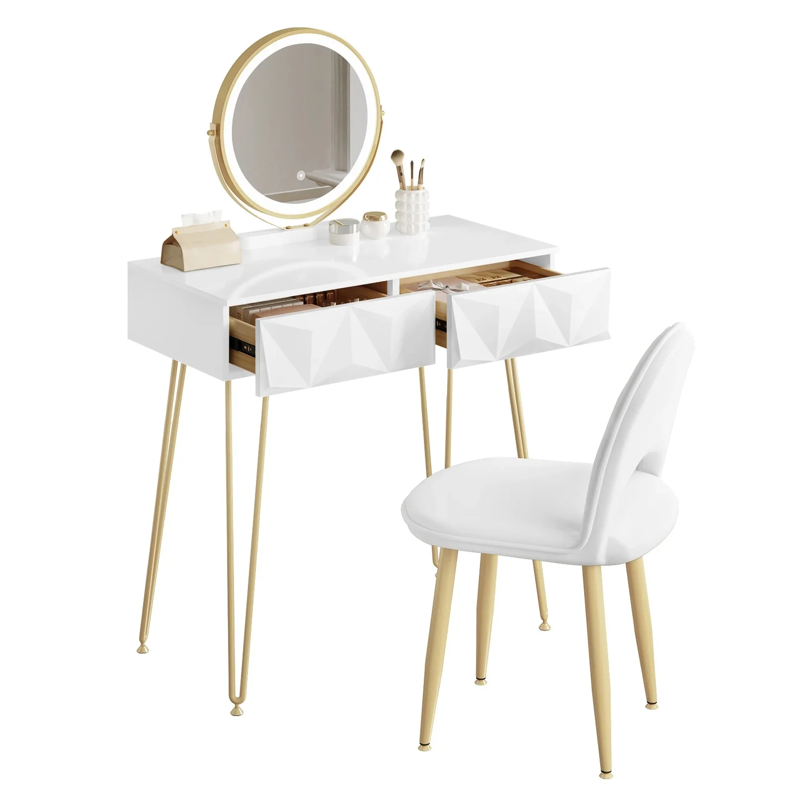 IDEAL GIFT: The simple and distinctive dressing table is easy to assemble. All you need to do is attach the mirror and the legs. Diamond-shaped drawers emphasize creativity. The white and golden color allow it to adapt to all decors