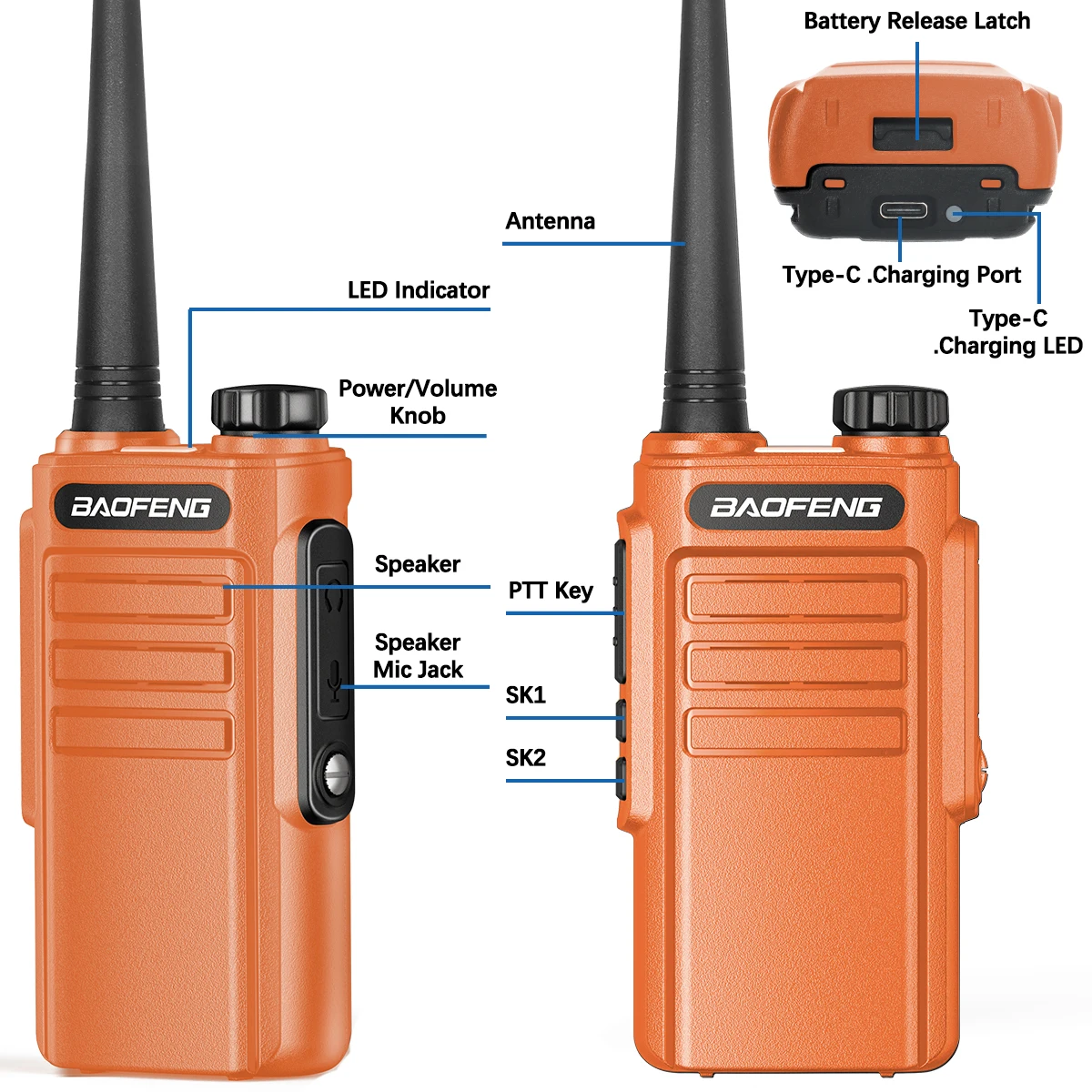 Type-C charging is a trend for mobile devices as it has low requirements for power sources and places. Baofeng W31D is Type-C USB rechargeable, for which you can easily charge it like a phone in your car, with a power bank or laptop. Portable for your go-kit.