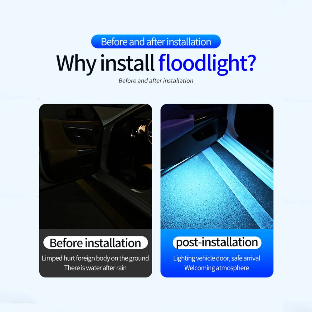 2.Induction switch design, open the door and the door is on/off when the door is closed, the door is automatically turned on, and the ground is irradiated with a clear view to avoid stepping on splashing puddles or gravel and causing feet;
