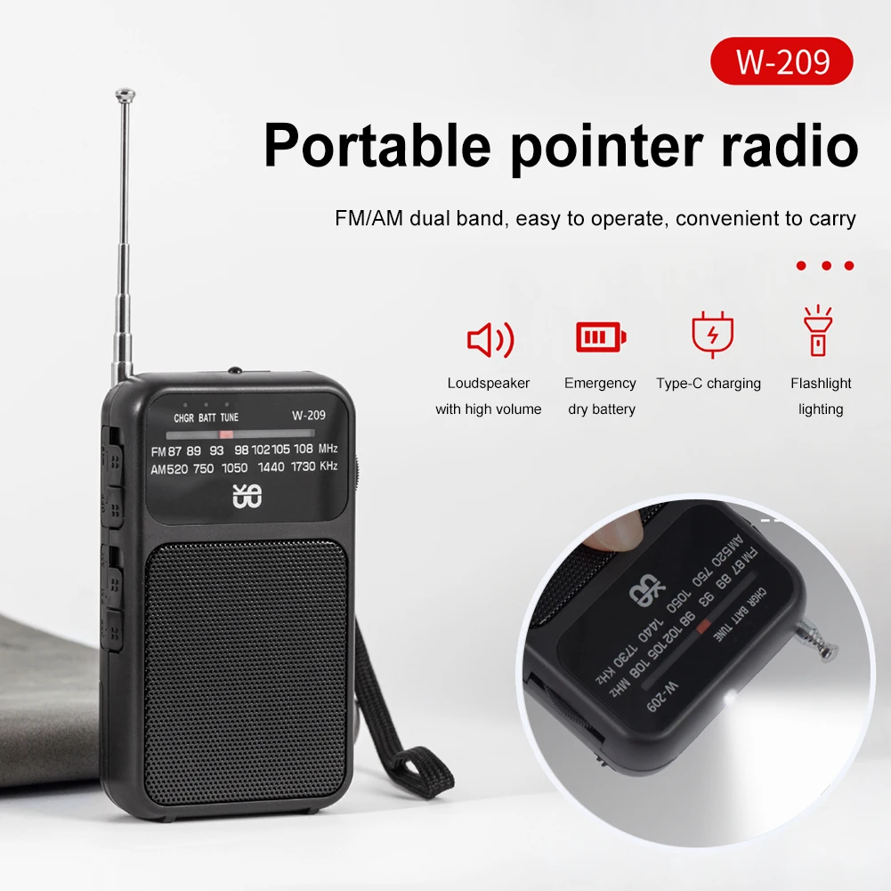 2 Band Stereo Radio Built-in Speaker Radio Player Battery Operated Telescopic Antenna Radio Flashlight with 3.5mm Headphone Jack