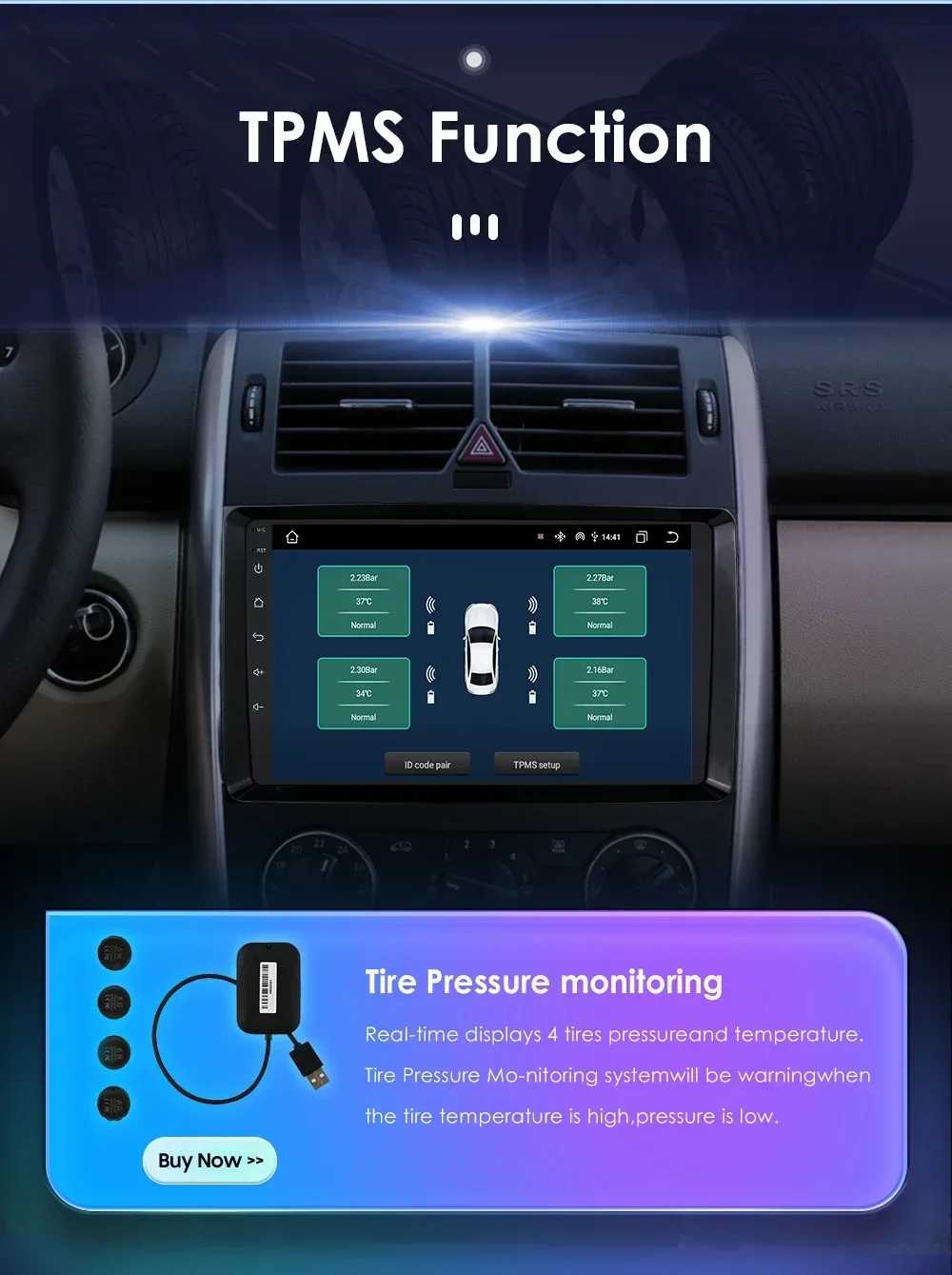 DAB+ Box ( Needs to order separately) : This radio has been installed DAB player APP, just connect with a DAB+BOX via USB Port to use this DAB+ Function, support input digital radio Programs and touch operation.you can use unit's touch screen to search and change programs ,and this unit can supply power to the connected DAB+ BOX.TPMS Function( Needs to order separately) :  Tire Pressure Monitoring: Real-time displays 4 tires pressure and temperature,Tire Pressure Monitoring system will be warning when the tire temperature is high, pressure is low.