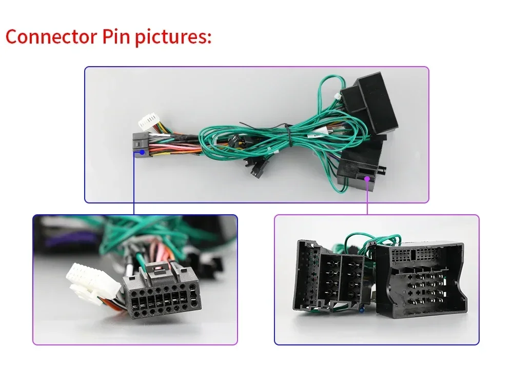 (Notice: if the connector pin to install with the car wires' cable is not the same as them which needs to contact the after-sale service to order special wire for installing)