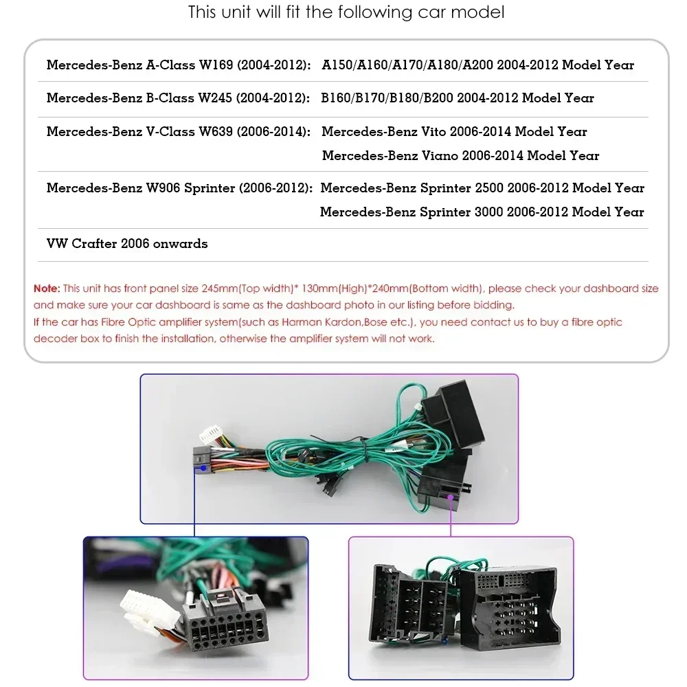 NOTE: Model and year just for your reference, please confirm the shape & size of center console before bidding.If your car has Fiber Optic ampliflier or other external amplifier system(such as Harman Kardon,Bose,JBL etc.),it is not compatible. But you can bypass these amplifier with extra extension cable(Please contact US to buyit together if needed).