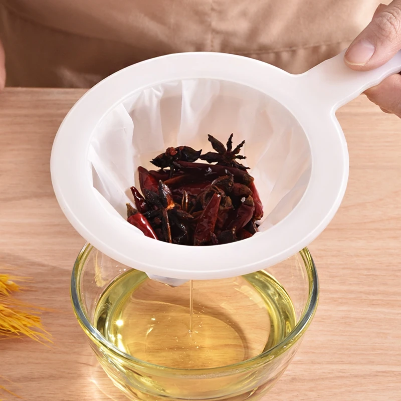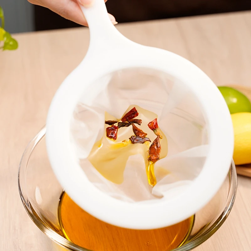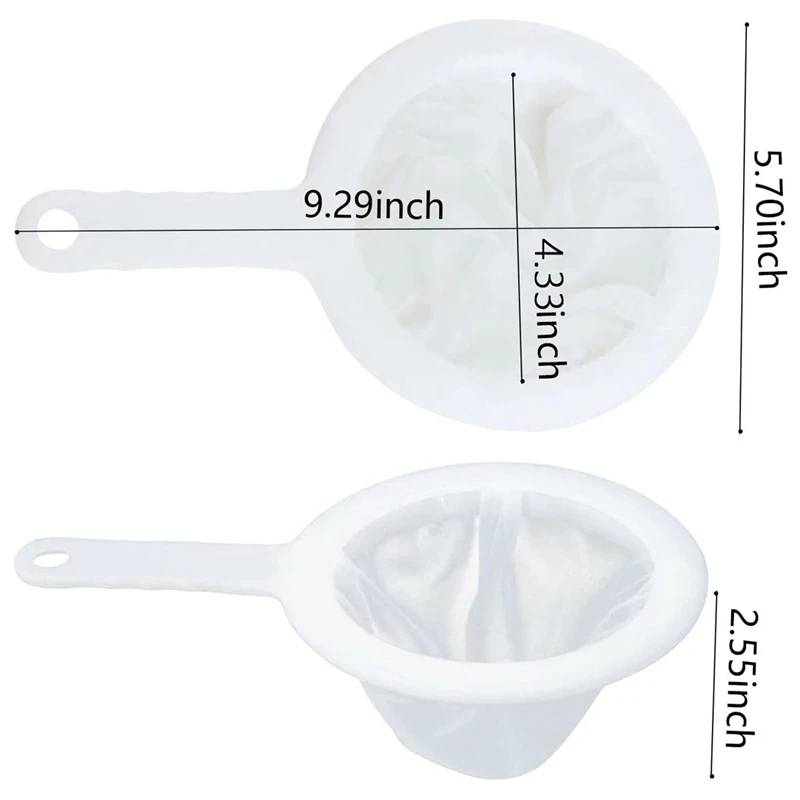【Convenient Design】:The color of this nylon mesh strainer bag with handle is white, it is suitable for kitchens with different styles; The filter has a non-slip handle, it is convenient and comfortable for you to hold, and there is a hole in the handle, you can hang it on the wall or cabinet easily to save space.
