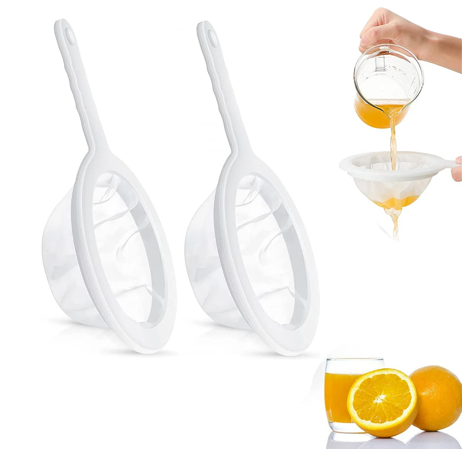 【Package Include】:You will get 2 pieces of long handle plastic nylon mesh strainers, mesh strainer is ultra-fine to filter Juice Food and so on ,the filtering function is very powerful and they are very easy cleaning.