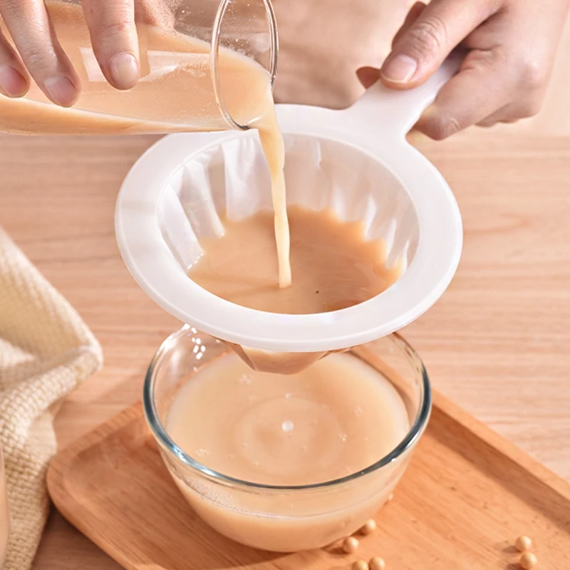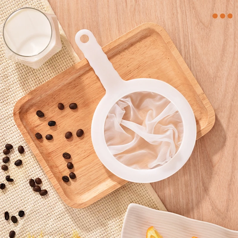【Convenient Design】:The color of this nylon mesh strainer bag with handle is white, it is suitable for kitchens with different styles; The filter has a non-slip handle, it is convenient and comfortable for you to hold, and there is a hole in the handle, you can hang it on the wall or cabinet easily to save space.