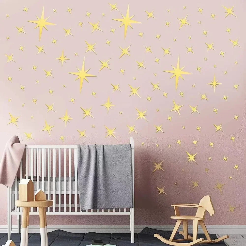 20/42pcs Star Mirror Wall Sticker DIY Acrylic Decal Waterproof Self-adhesive Wallpaper Bedroom Children Room Home Decoration