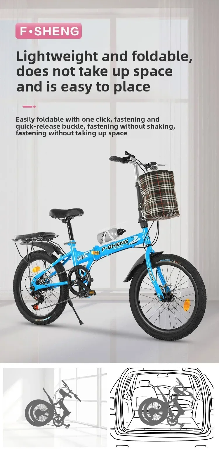 20 Inch Folding Bicycle Transmission Car 6 Speed Double Disc Brake Bicycle Stud ent Bicycle Adult Folding Bi cycle