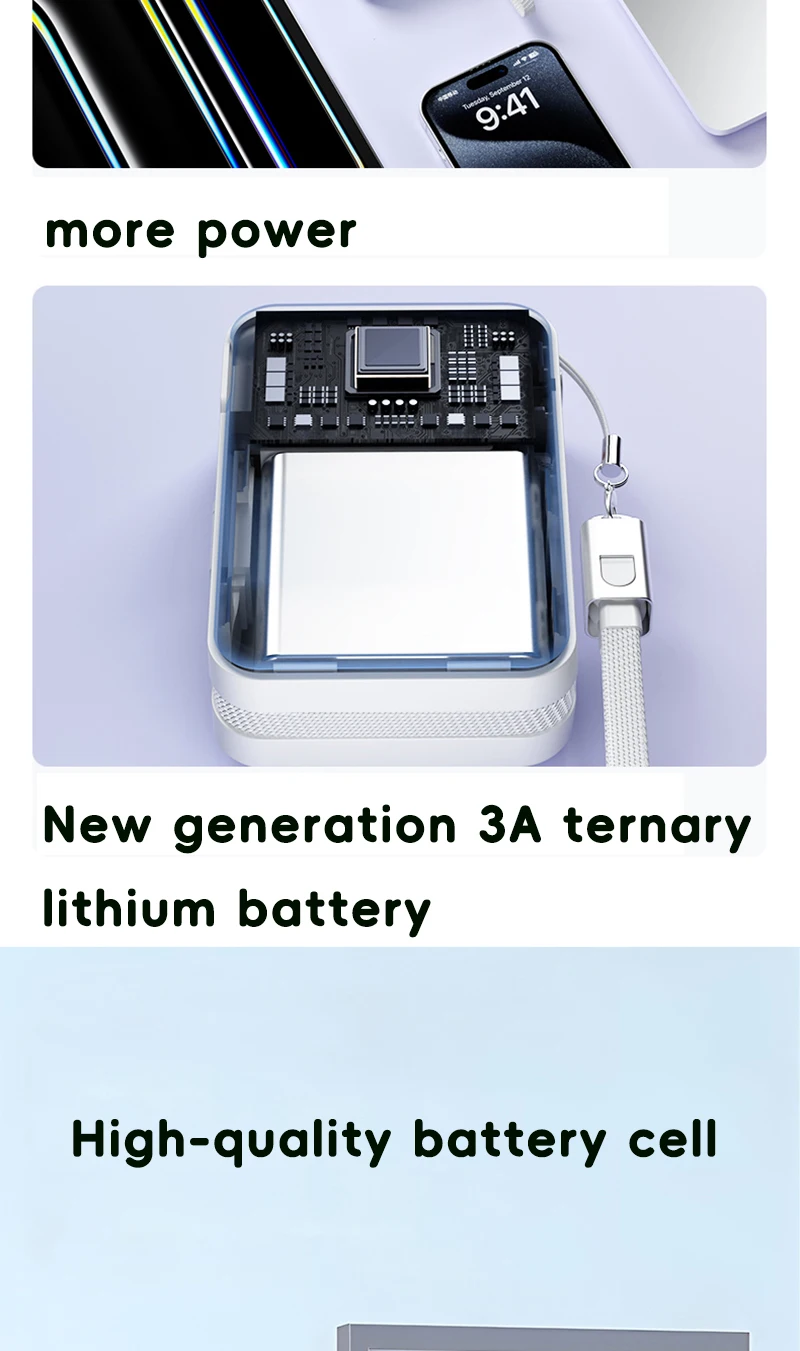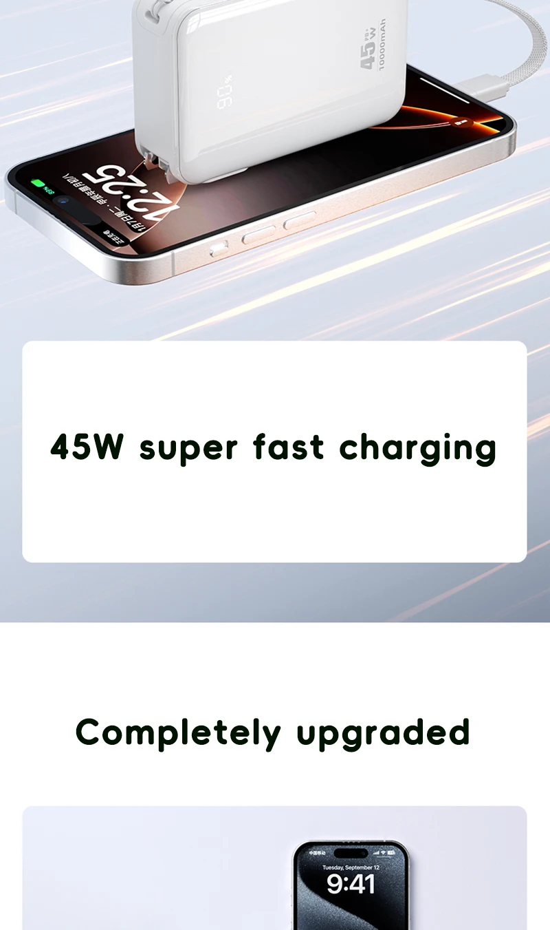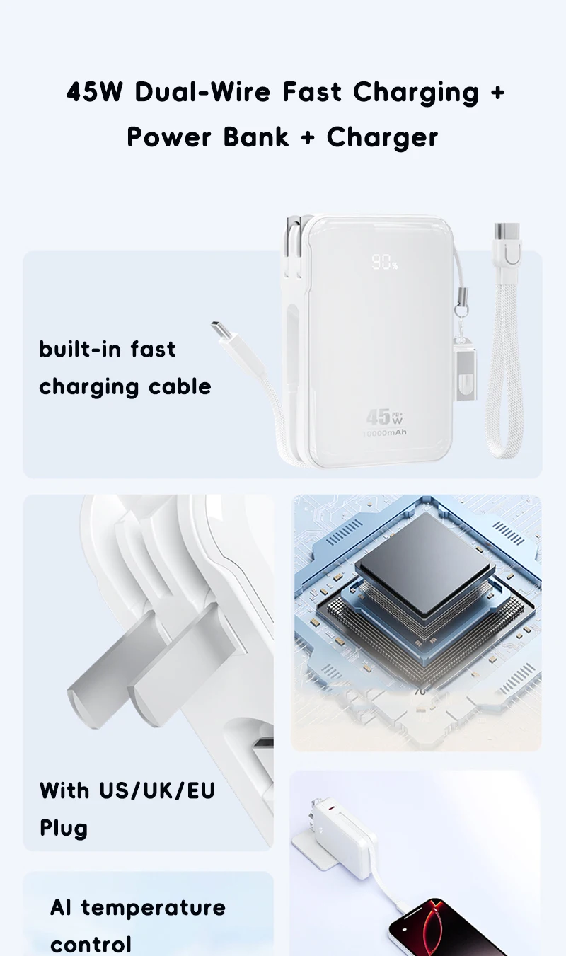 - Features: Built in Cables,Charger & Battery in 1,With Plug