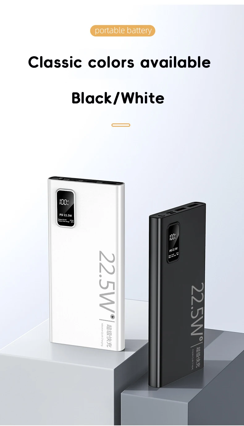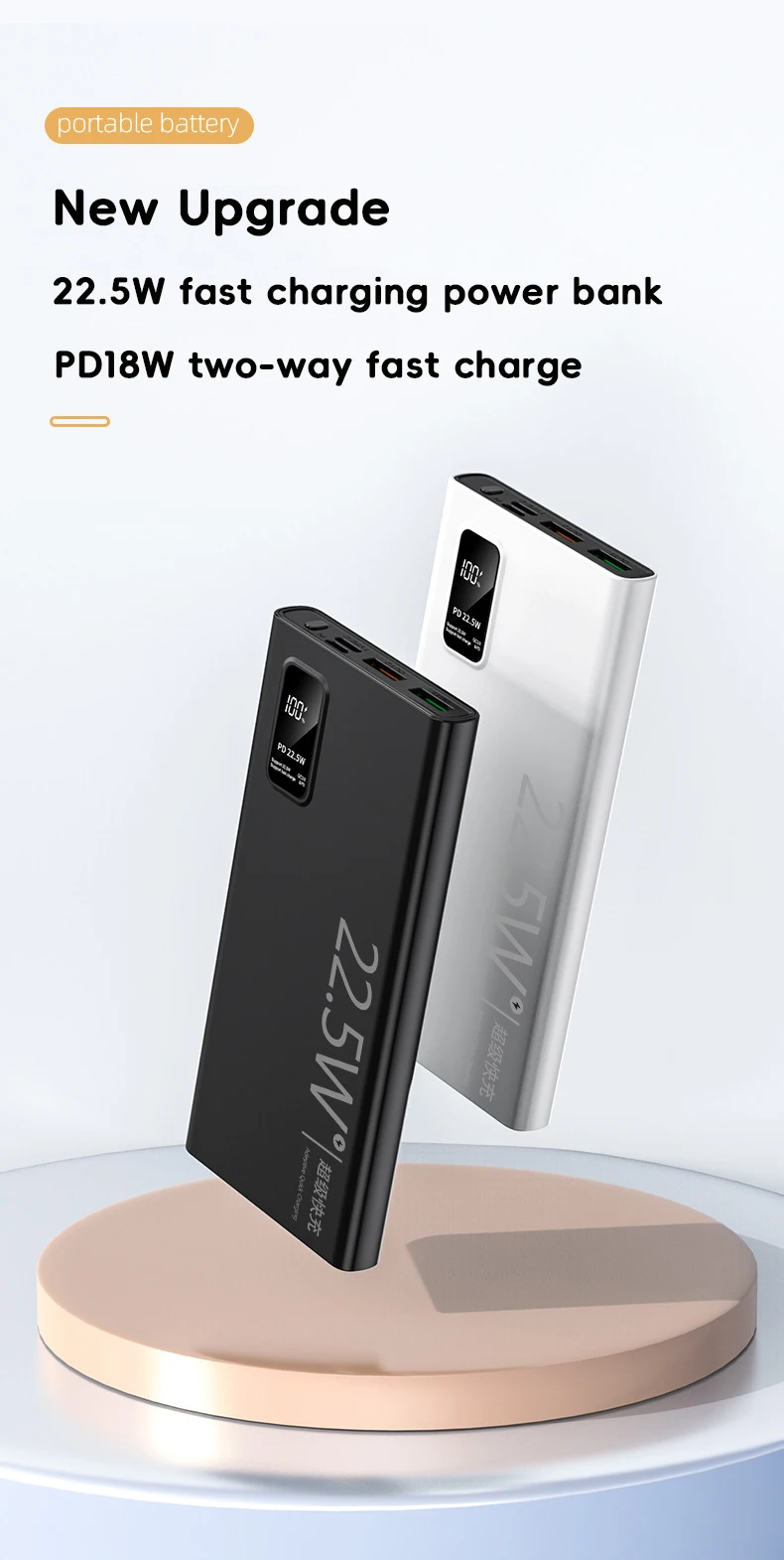 Portable 20000mAh Large capacity Power Bank 10000mah 22.5W USB Type-C Fast Charging External Auxiliary Battery Powerbank for iPhone 16 15 14 13 Samsung Xiaomi HUAWEI