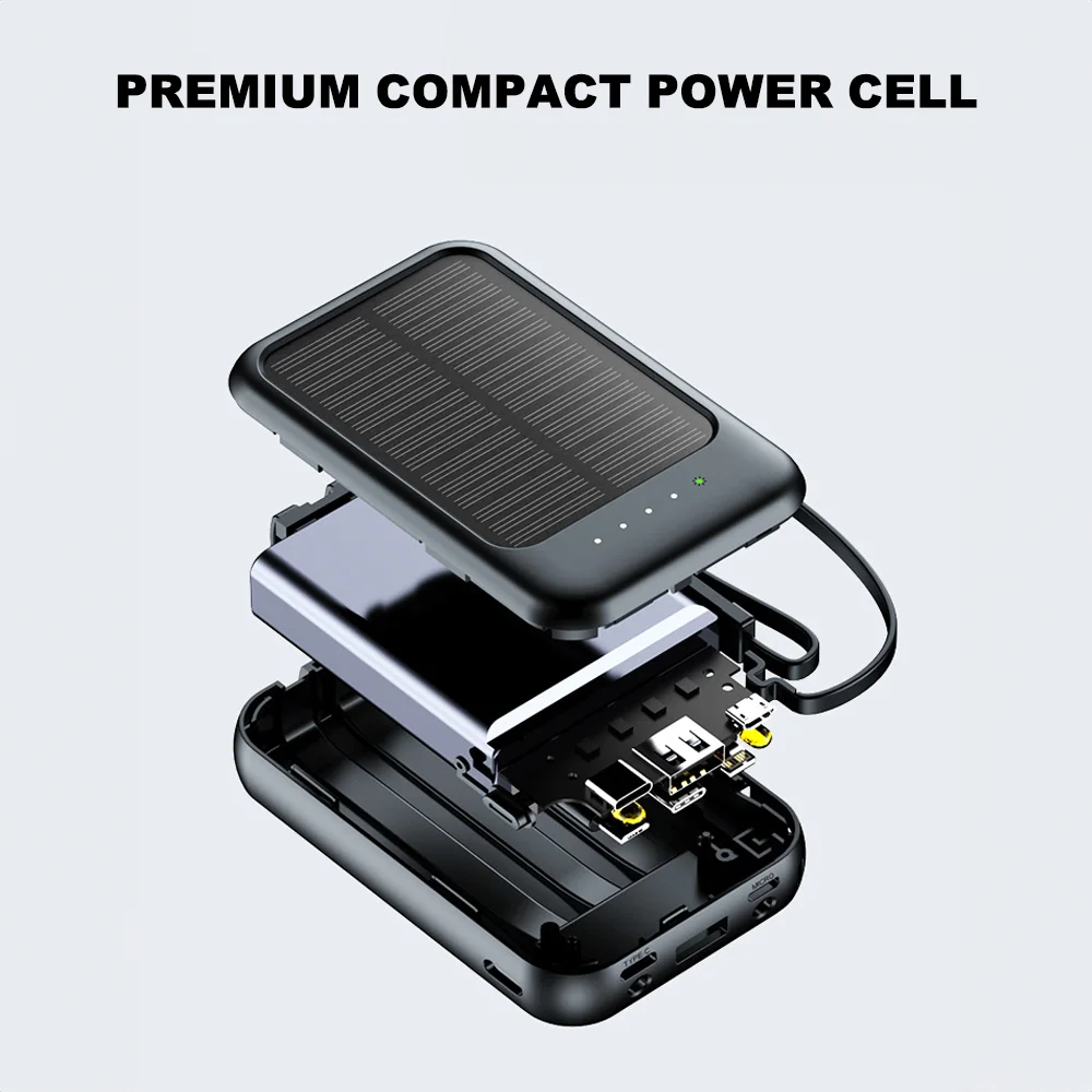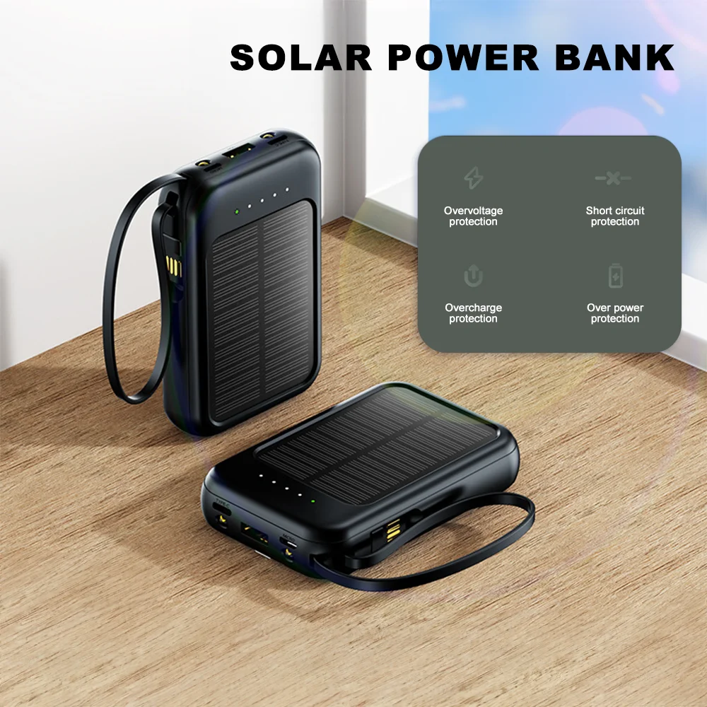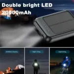 Power through your day with the 20000mAh solar power bank, providing ample charge for all your devices.