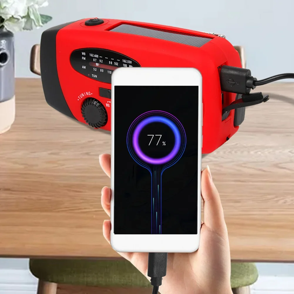 3. Multi-functional Power Source: Equipped with a power bank charger, this emergency hand crank radio not only keeps you informed during emergencies but also allows you to charge your smartphones and other USB-powered devices, ensuring you stay connected even when the power is out.