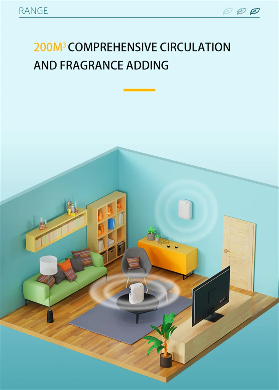 200m³ Timing Scent Machine Hotel Aroma Diffuser Wall Mounted Essential Oil Diffuser For Home Fragrance Bluetooth APP Control