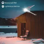 Accessories: remote control, installation screws, instruction manual, lighting fixture, solar panel. Installation bracket