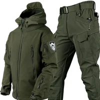 2023 New Soft Shell Winter Plush Thickened Outdoor Fishing Waterproof Windproof Cutting Wear-resistant Hooded Jacket and Pants