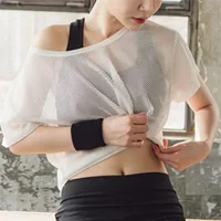 2024 Sexy Mesh Yoga Shirt Quick Dry Sport Fitness Female Running Shirt Gym Clothes Tank Top Workout Exercises T-Shirt Sportwear