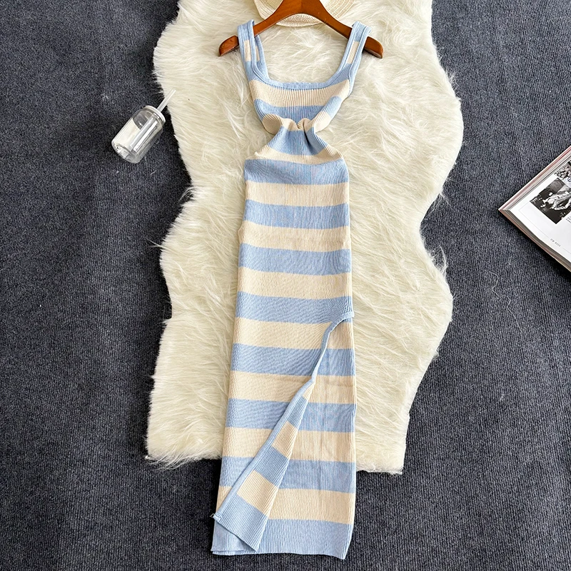 Be the first to review “2024 Stripe Summer Elastic Split Bodycon Dress Sexy Beach Vacation Sundress Women Casual Slim Pencil Vestidos Maxi Long Dress”