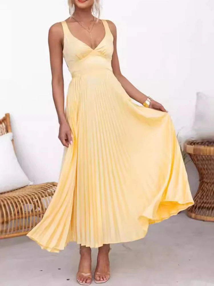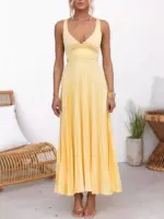 Be the first to review “2024 Summer Fashion New Style Women’s Elegant Strap Fold Style Loose Solid Color Vacation Style Banquet Style Women’s Long Dress”