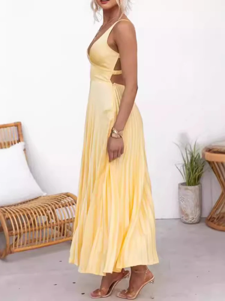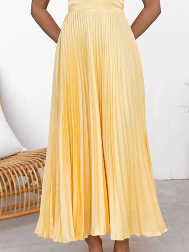 2024 Summer Fashion New Style Women’s Elegant Strap Fold Style Loose Solid Color Vacation Style Banquet Style Women’s Long Dress
