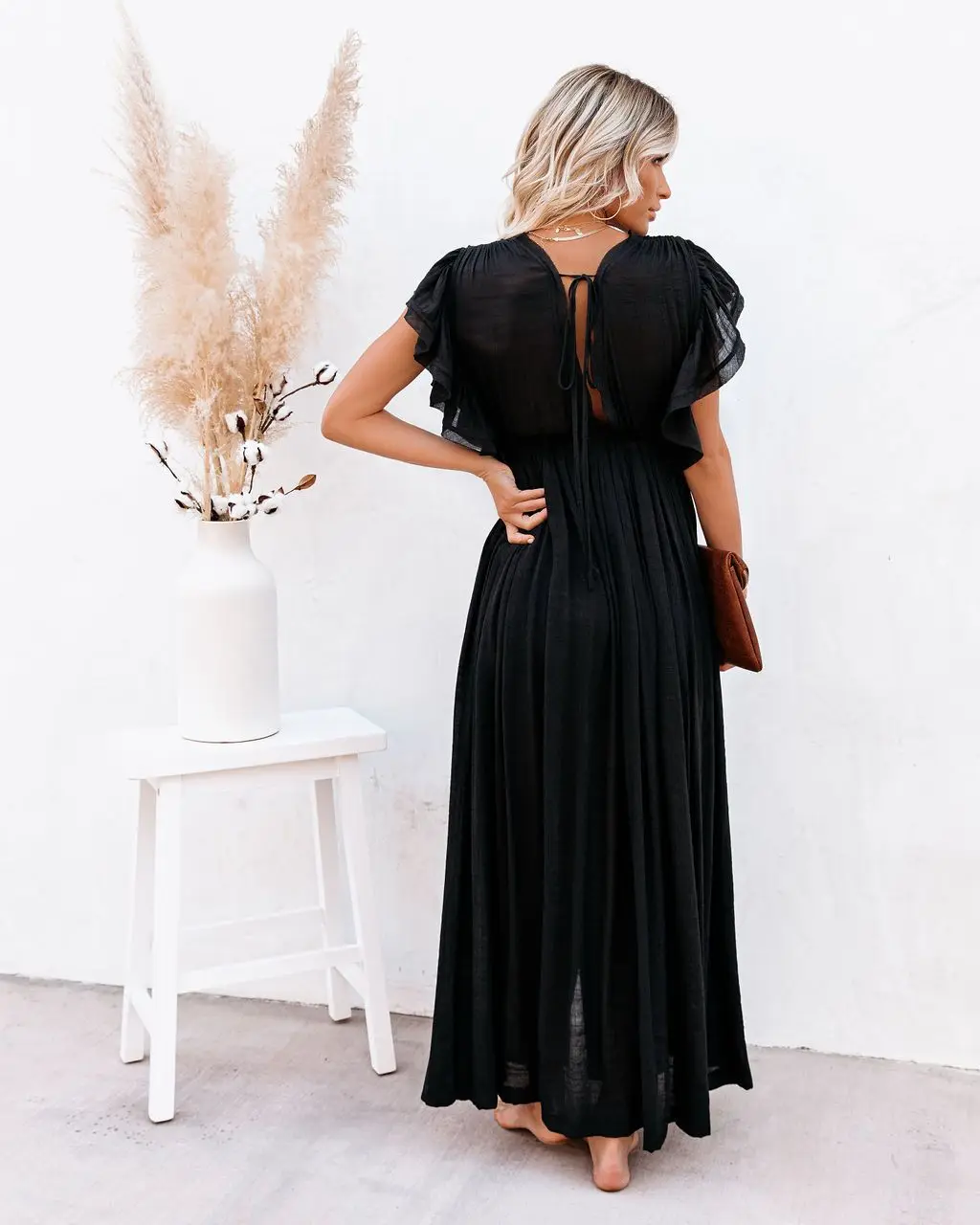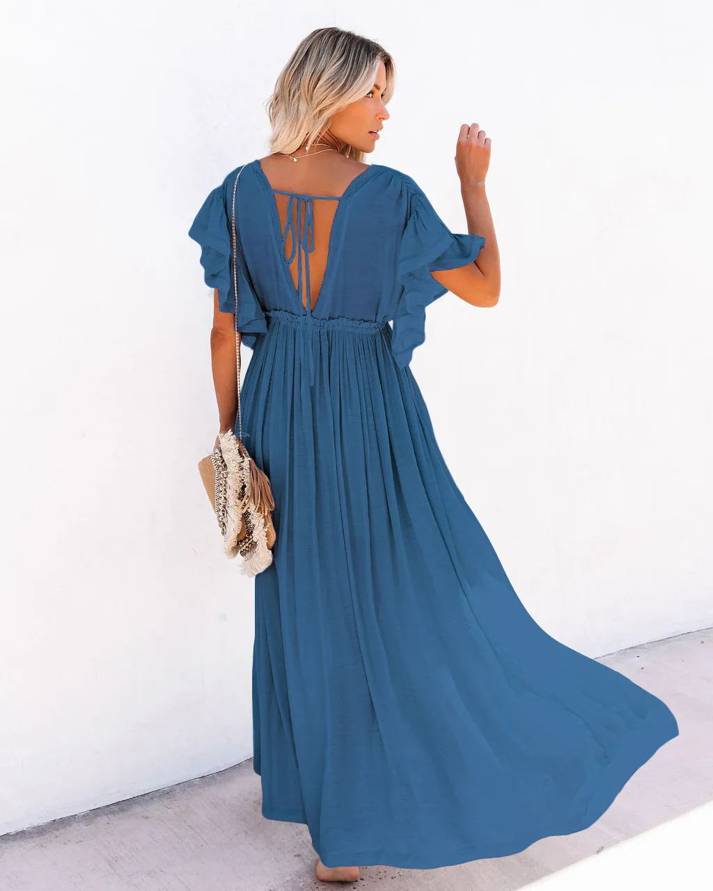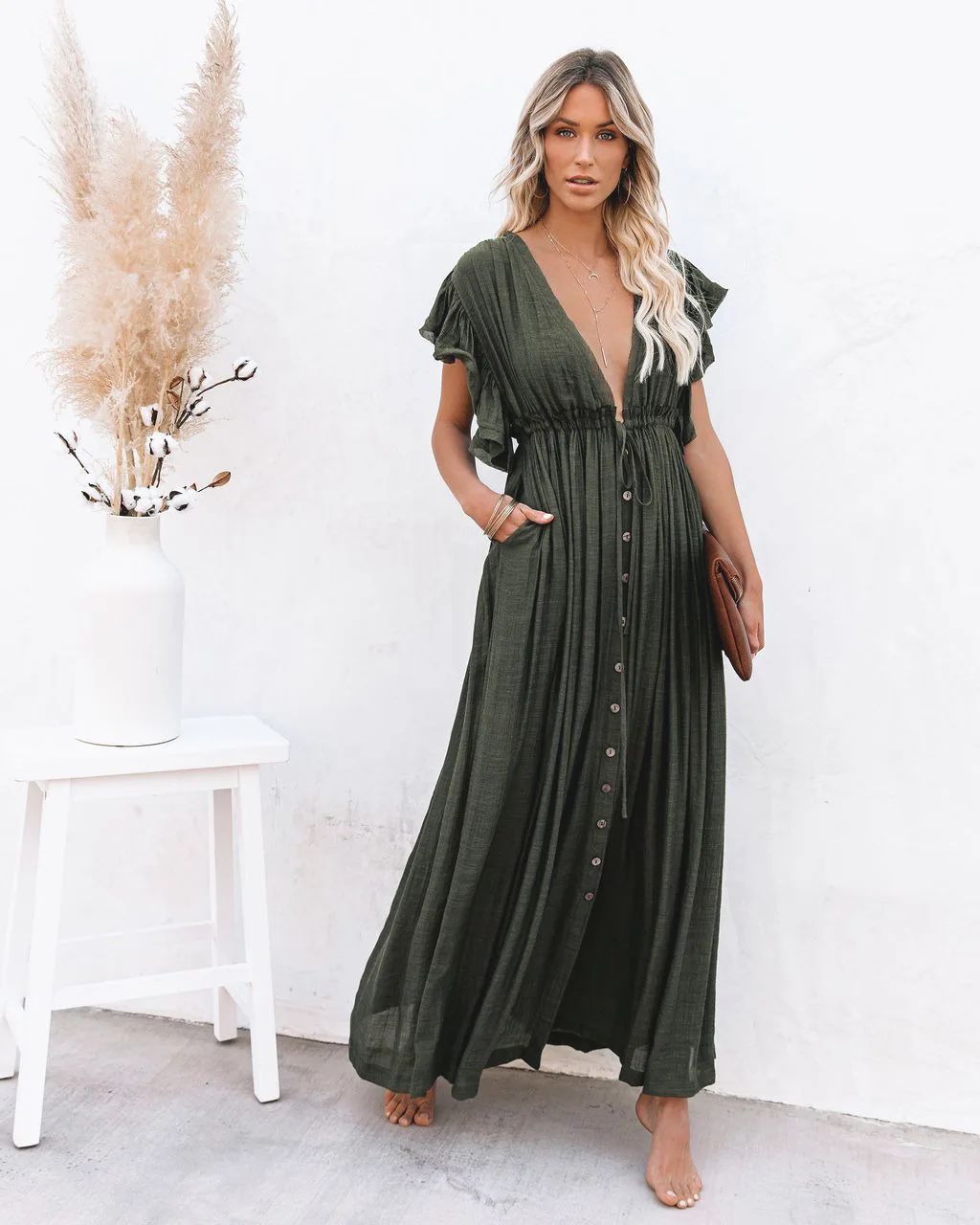 2024 Summer Long Bikini Cover Ups for Women Solid V-Neck Kimono Beach Dresses Lace Up Anti-Sun Swim Dress Bohemian Sarong Skirt