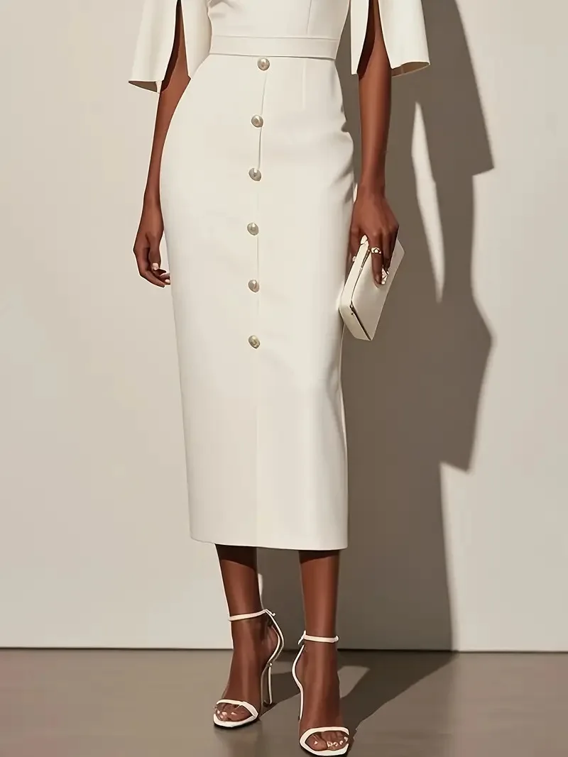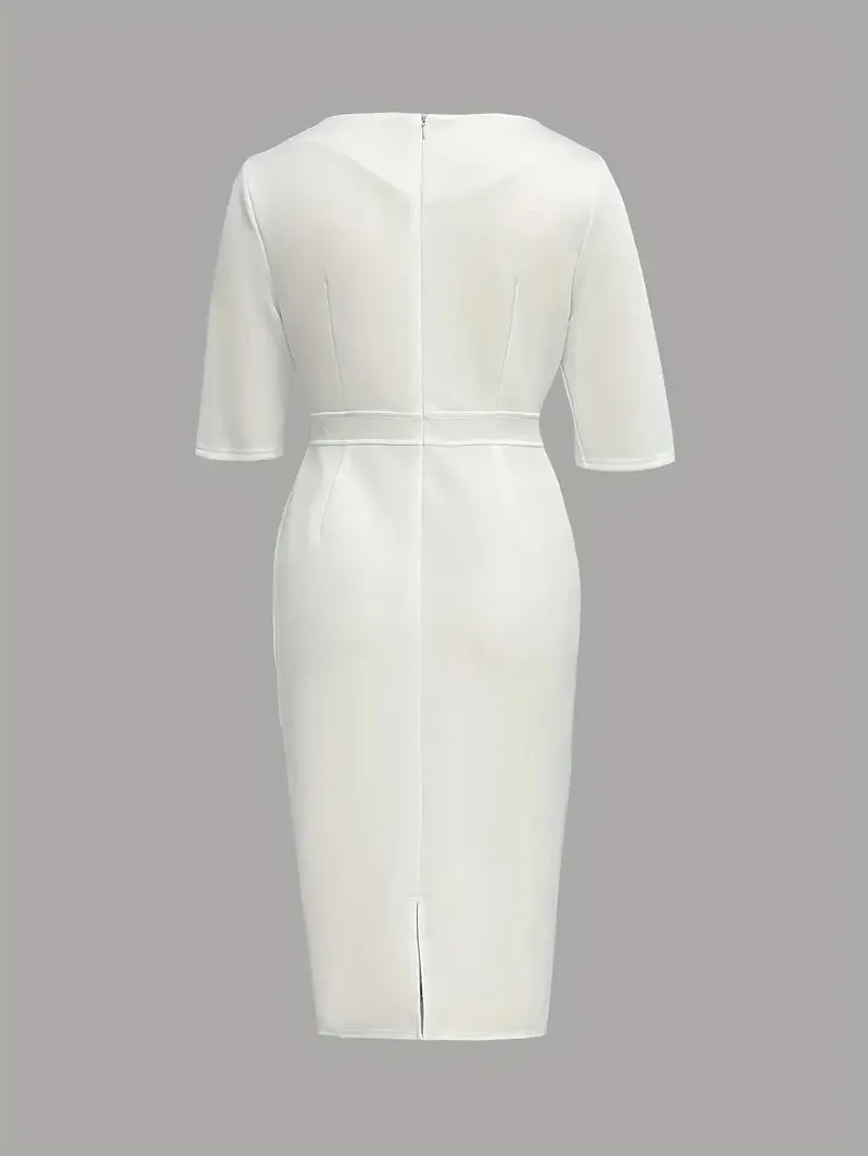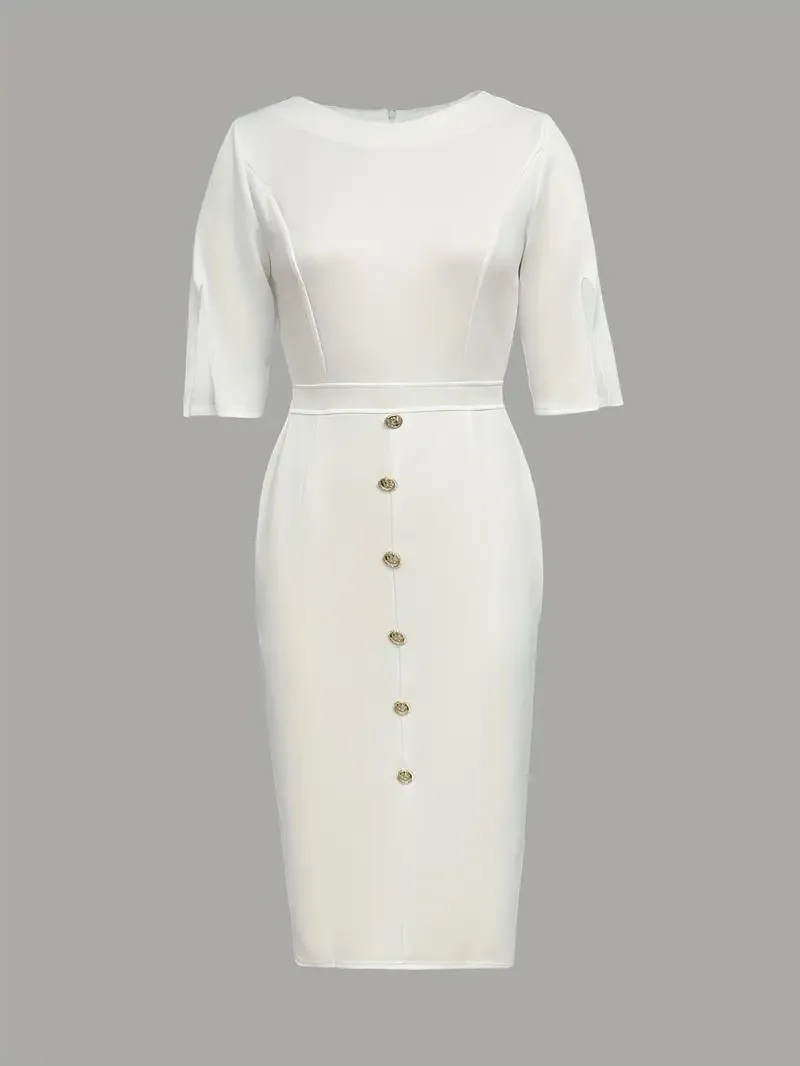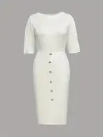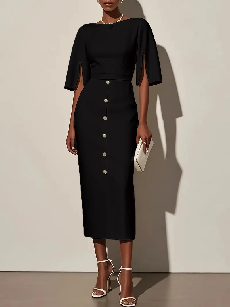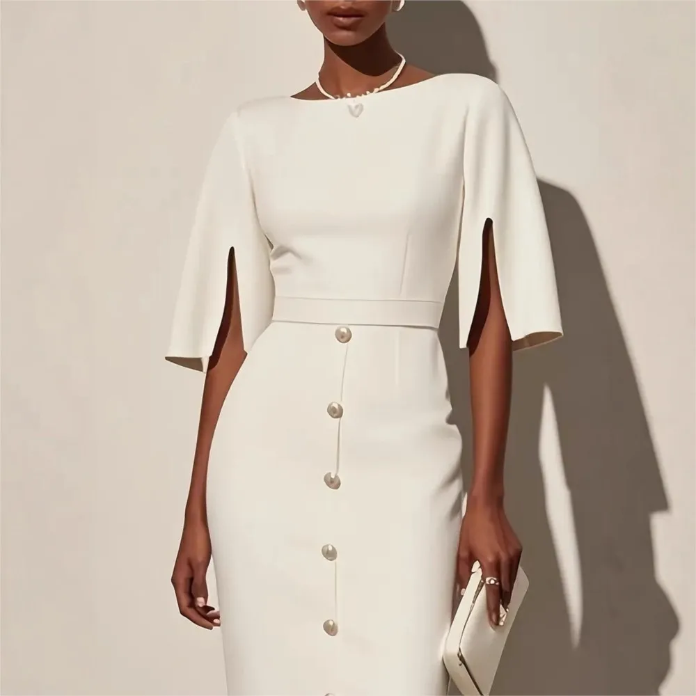 2025 Autumn Dress Office Lady Fashion Elegant Solid Slim Half Sleeve O-neck Button Party Long Drsses For Women Female