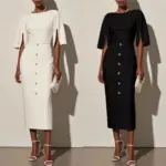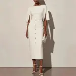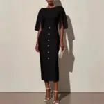 Be the first to review “2025 Autumn Dress Office Lady Fashion Elegant Solid Slim Half Sleeve O-neck Button Party Long Drsses For Women Female”
