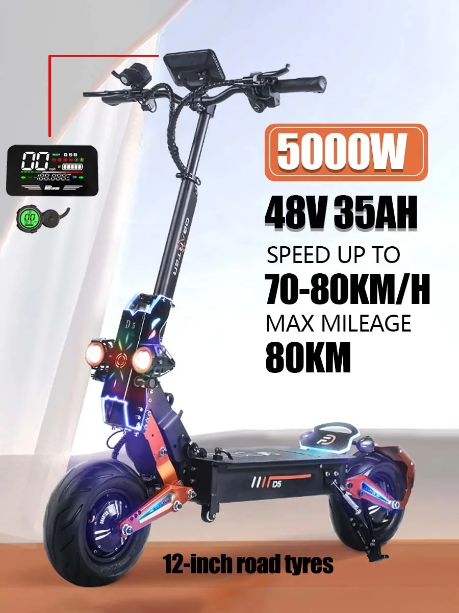 2025 EU D5 5000w Dual Motor Electric Scooter 48v35ah Removable Battery Speed 75-80km/h 12 inch Road Tyre Foldable Escooter