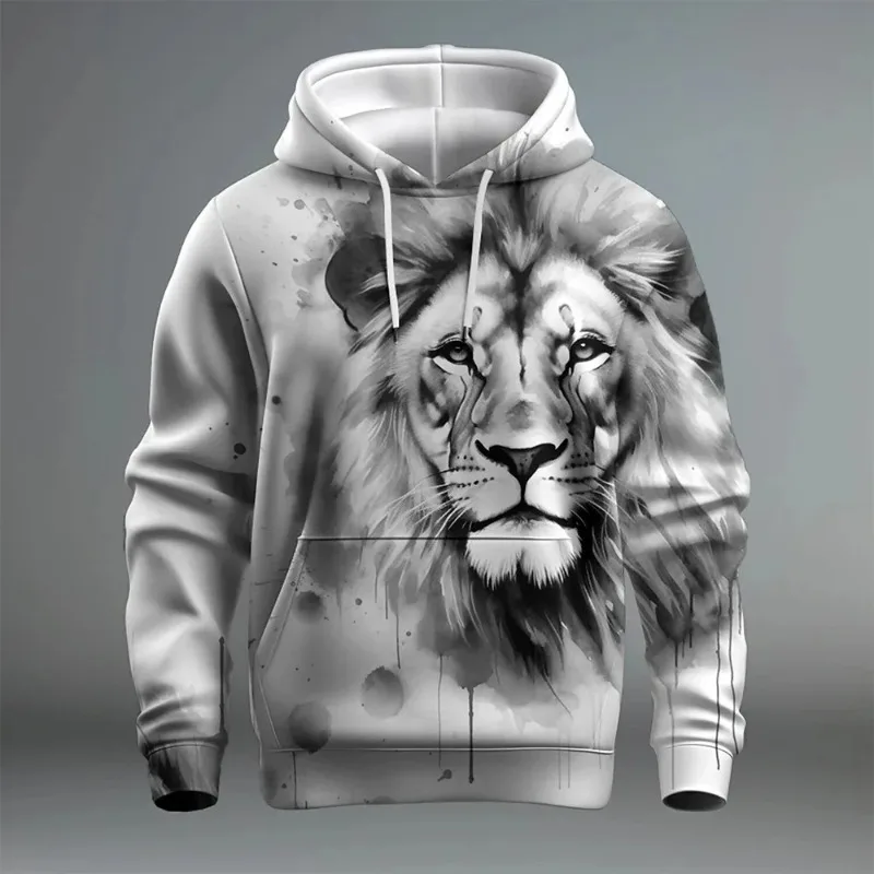 2025 Fun 3D Lion Printed Hoodie Men’s Hip Hop Fashion Y2k Clothing Autumn/Winter Casual Sportswear Fashion Oversized Hoodie