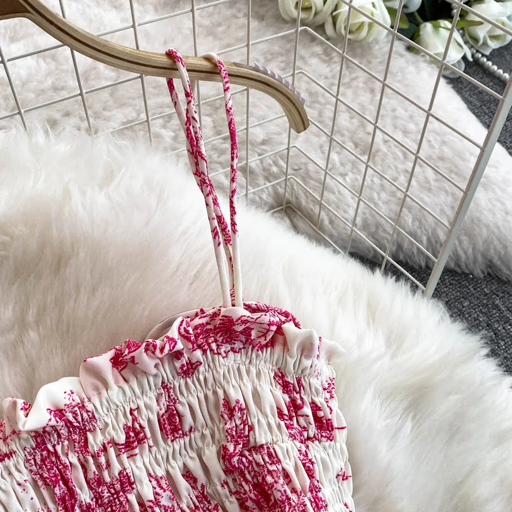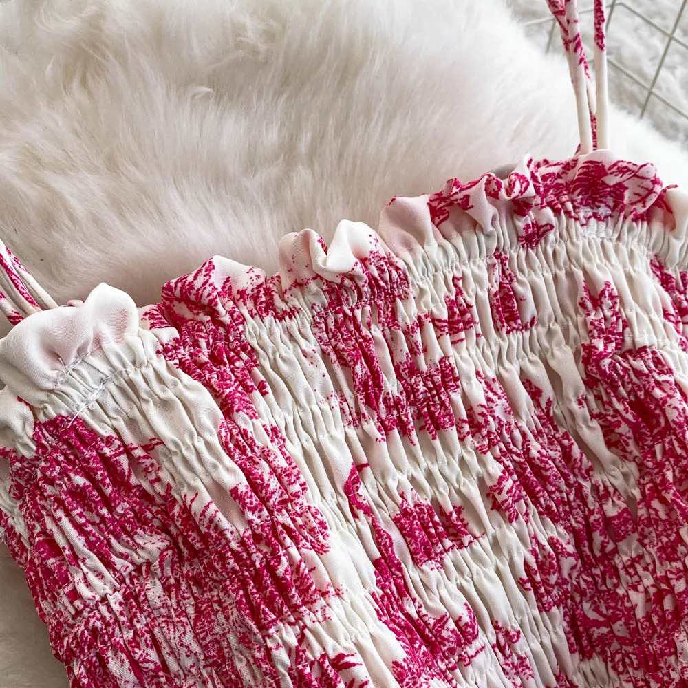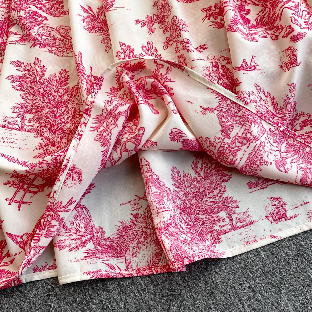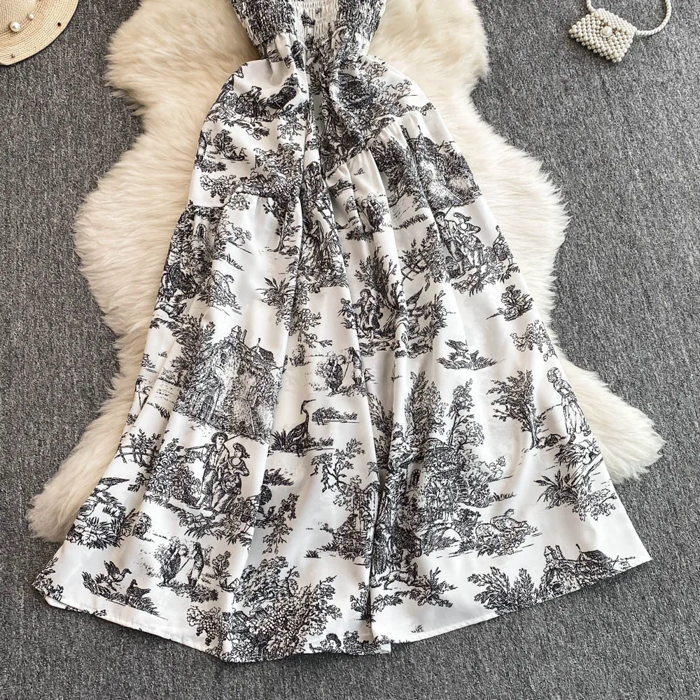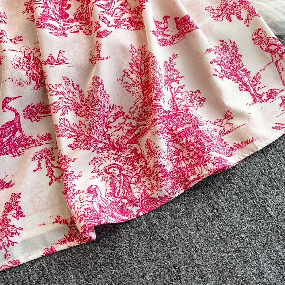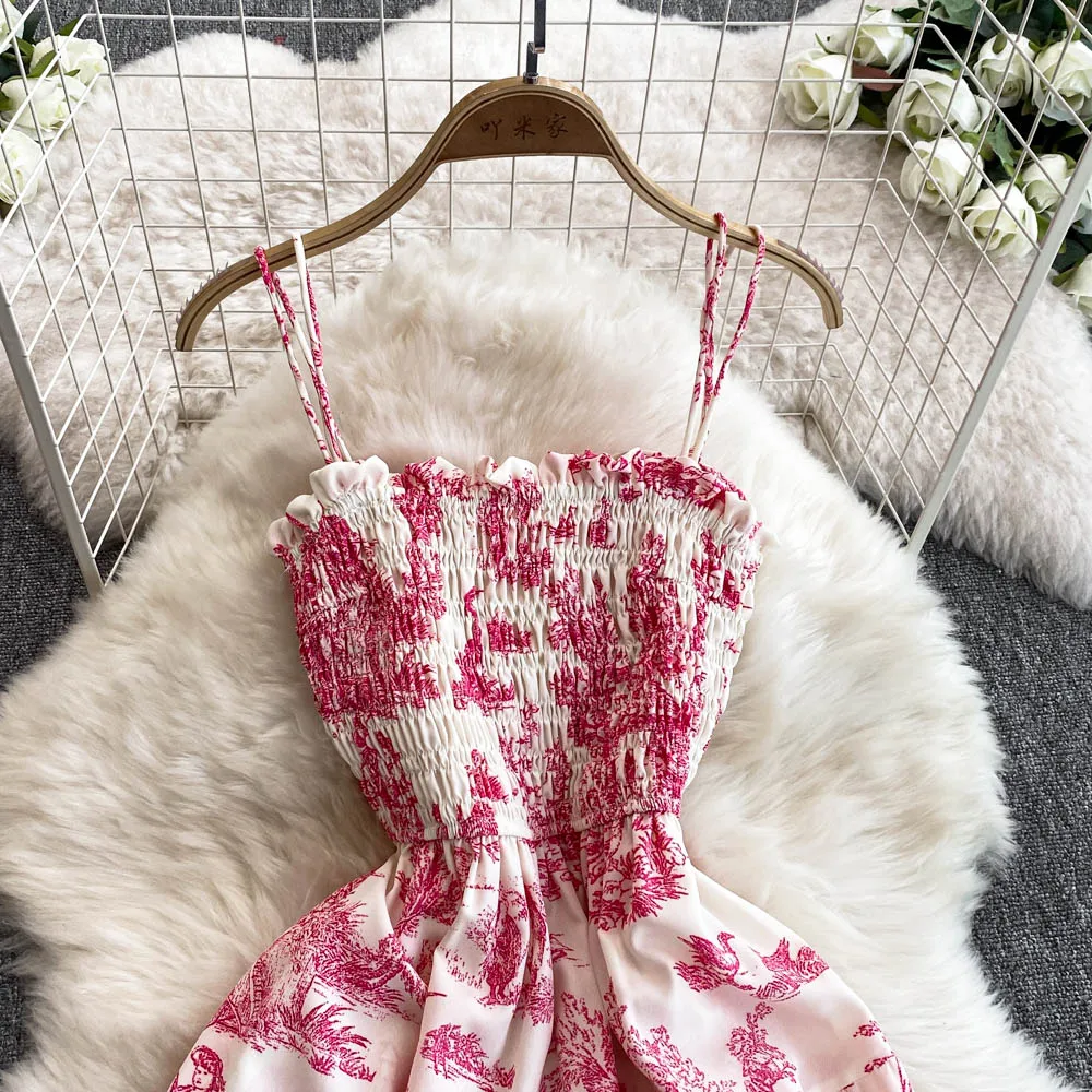 2025 New Summer Pink/Purple Flower Print Romantic Retro Party Dress Elastic High Waist Vacation Long Dress Beach Vestido