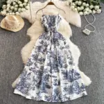 Be the first to review “2025 New Summer Pink/Purple Flower Print Romantic Retro Party Dress Elastic High Waist Vacation Long Dress Beach Vestido”