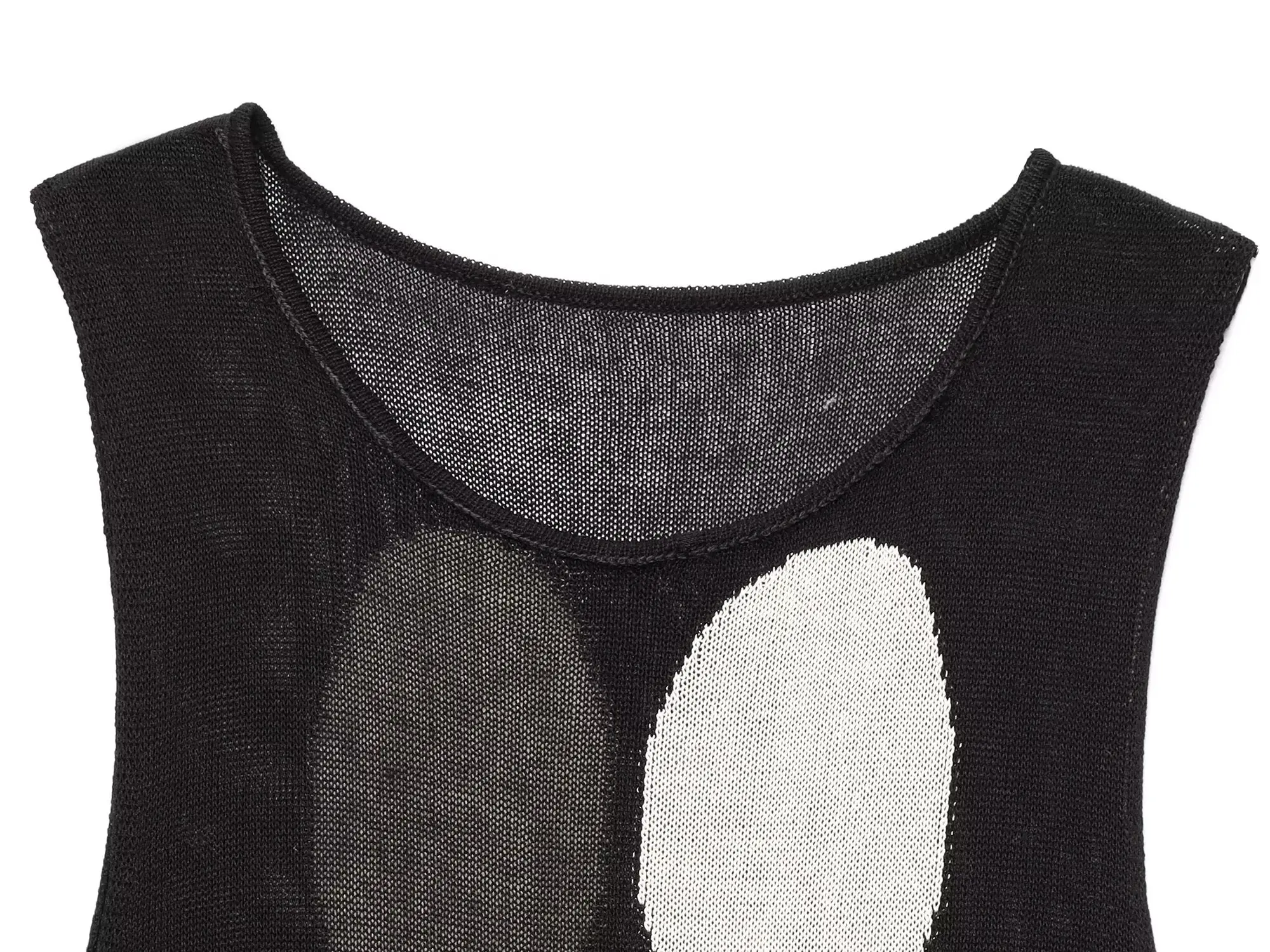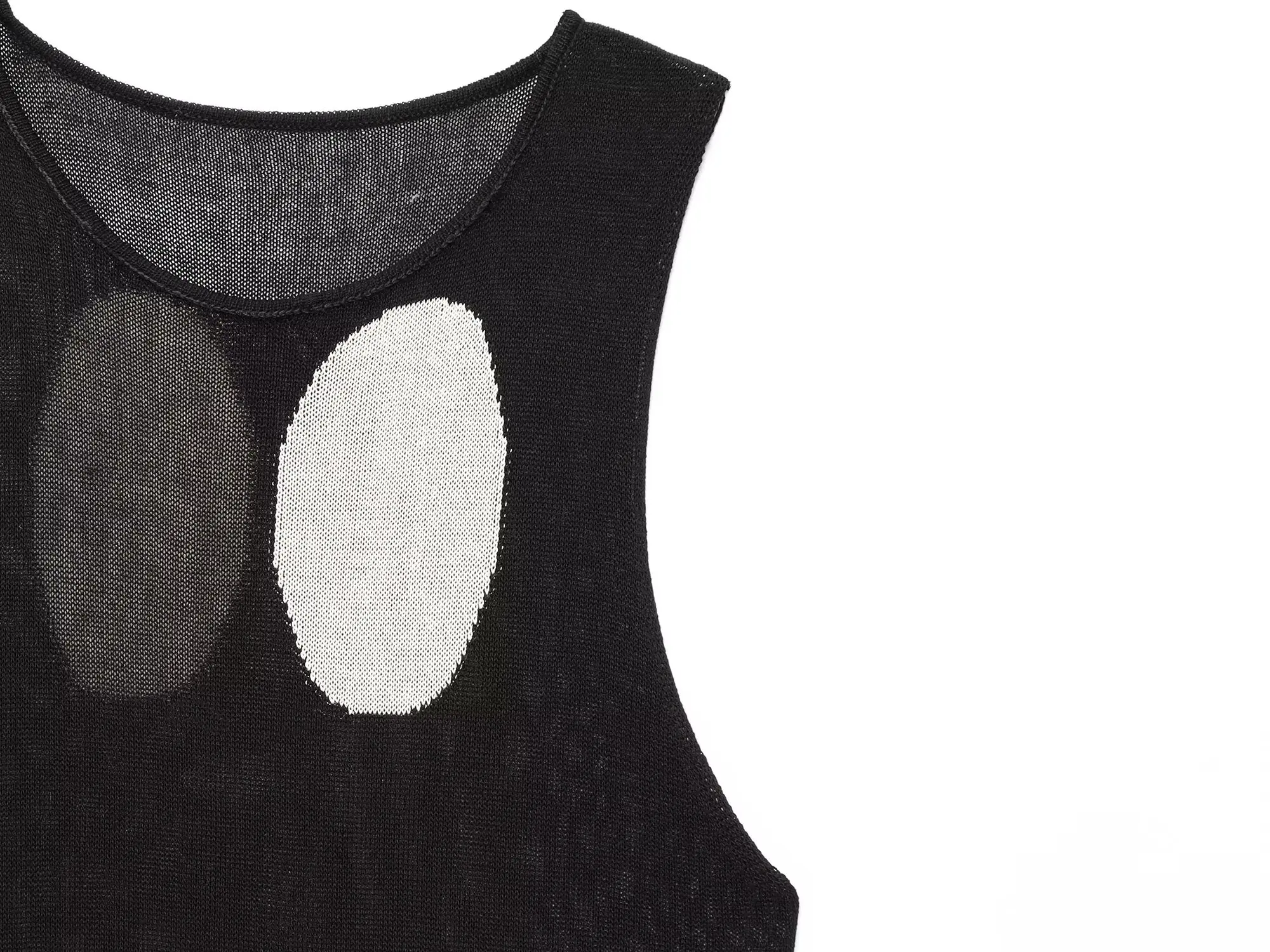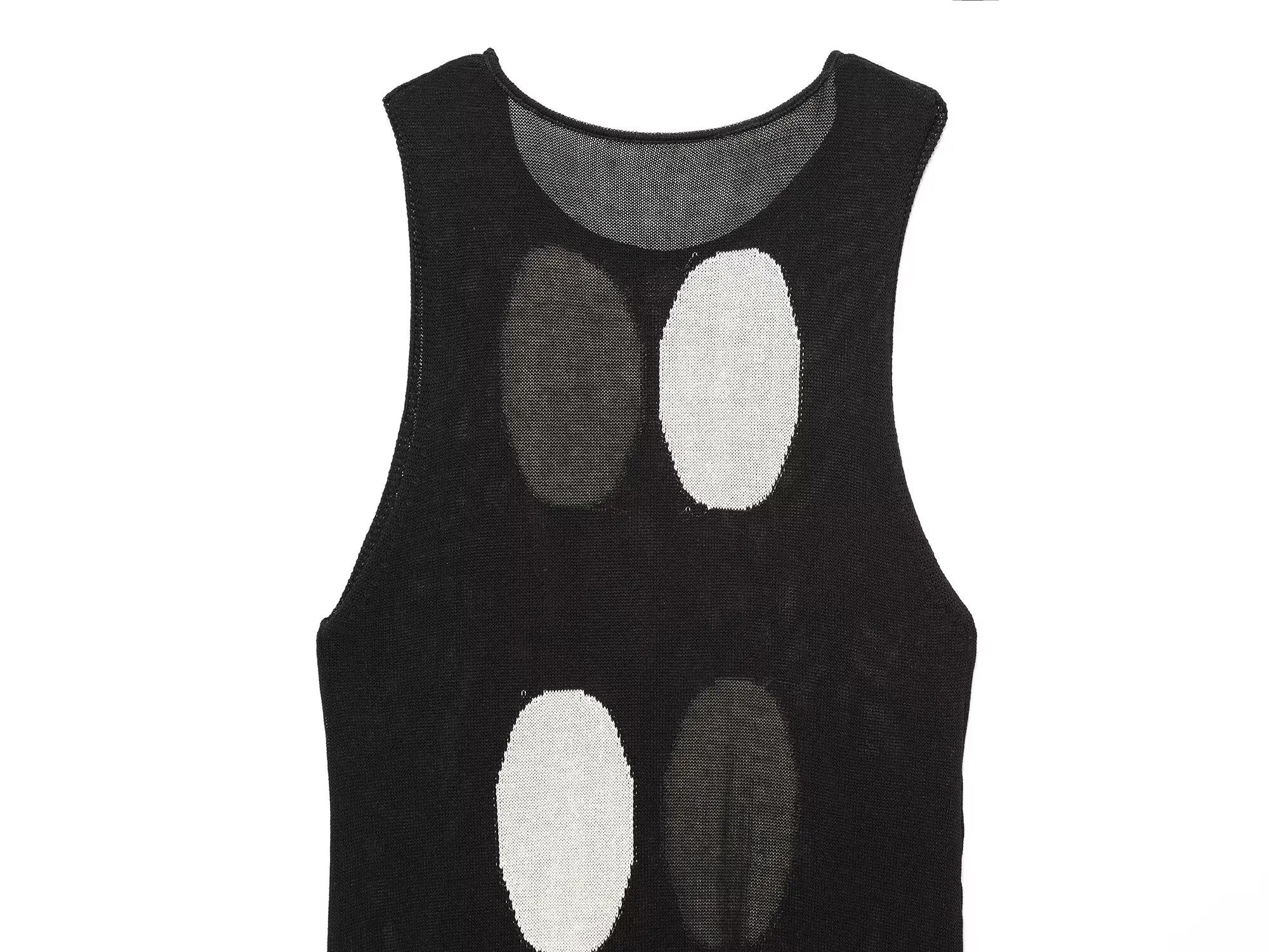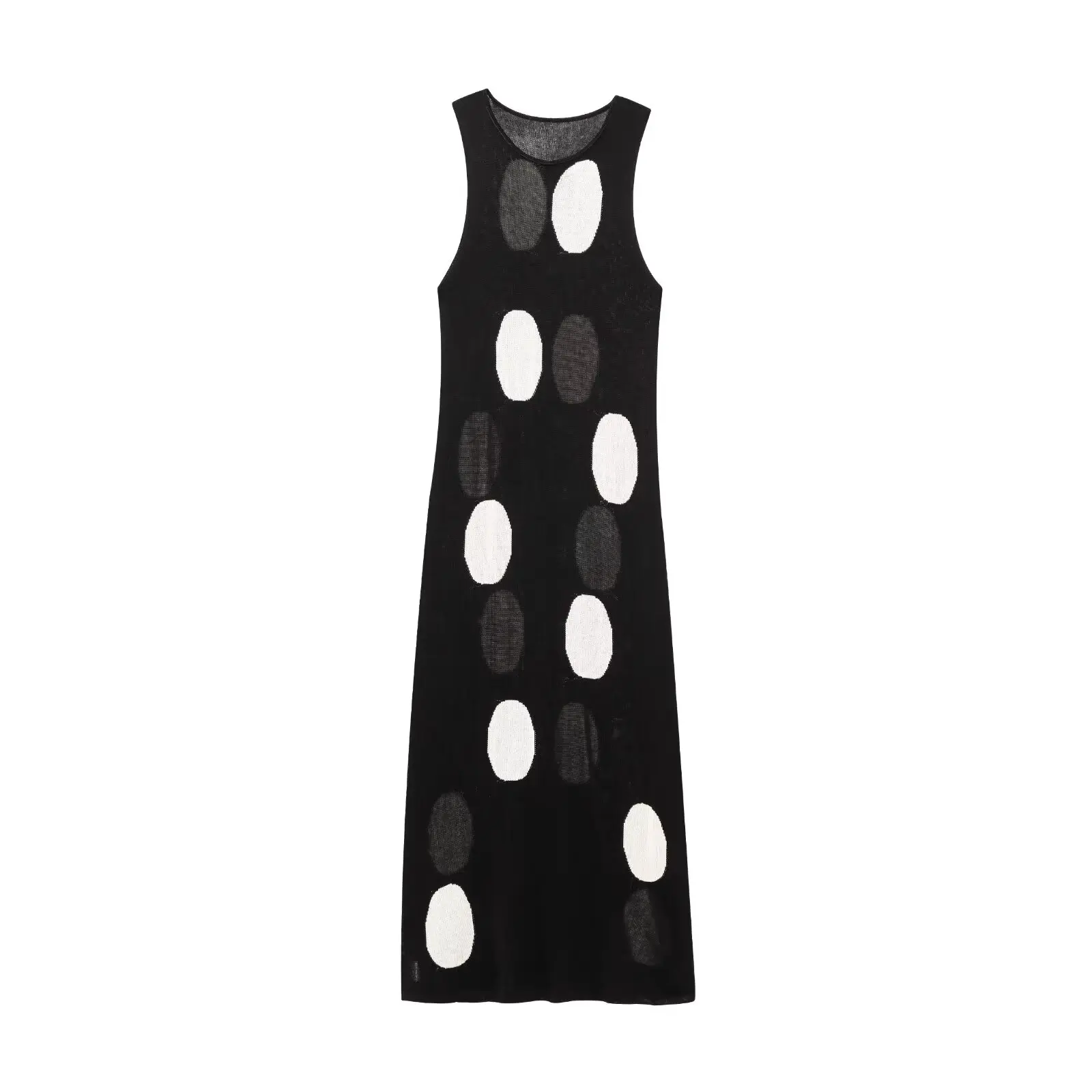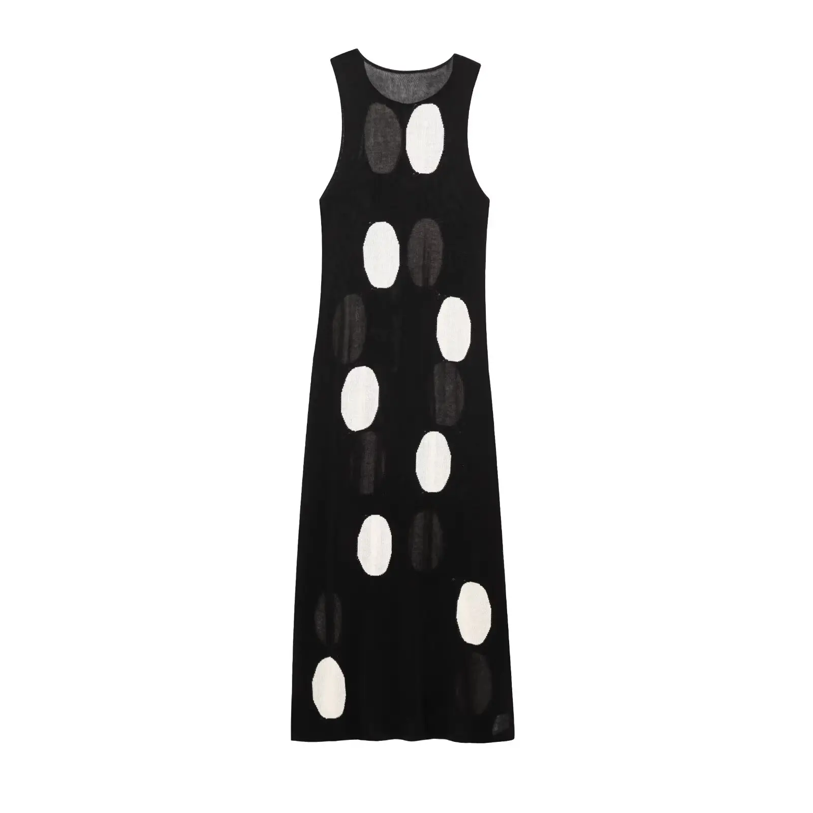 2025 new summer women’s casual fashion large polka dot print sleeveless knitted long slim dress