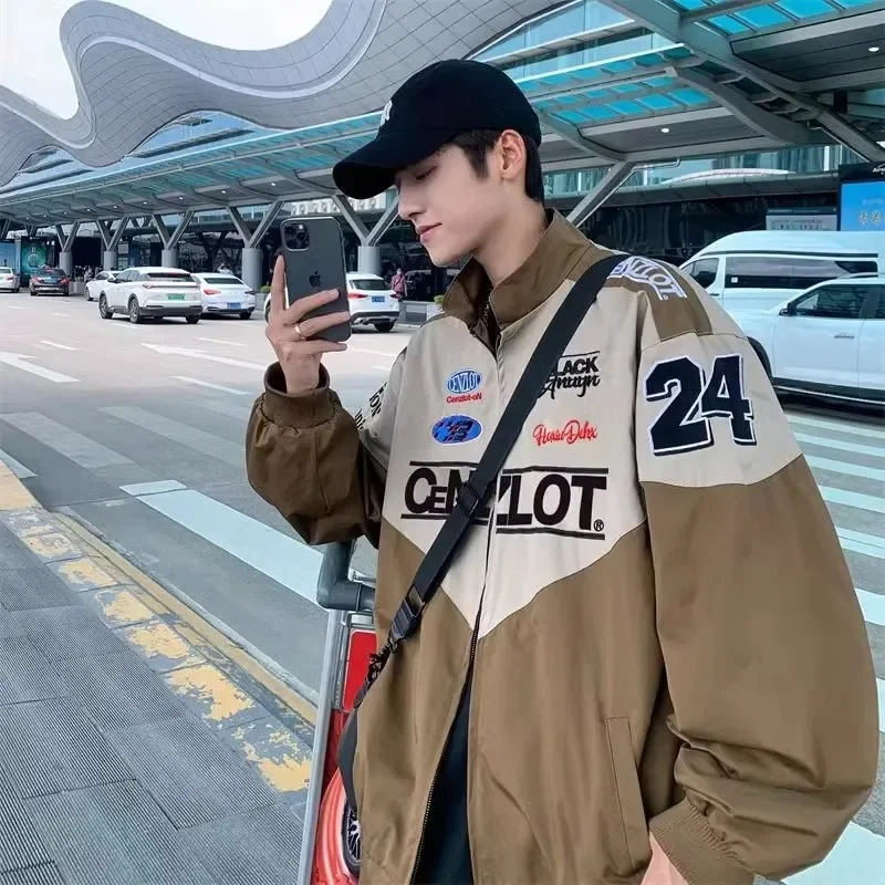 2025 New Vintage American Style Racing Jacket For Men High-End Feel Motorcycle Vest Autumn Trendy Brand Baseball Shirt