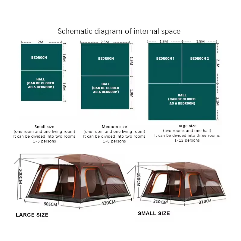 2025 Upgraded Version Two Bedroom One Living Room Windproof Waterproof Folding Tent Portable Family Camping Tent