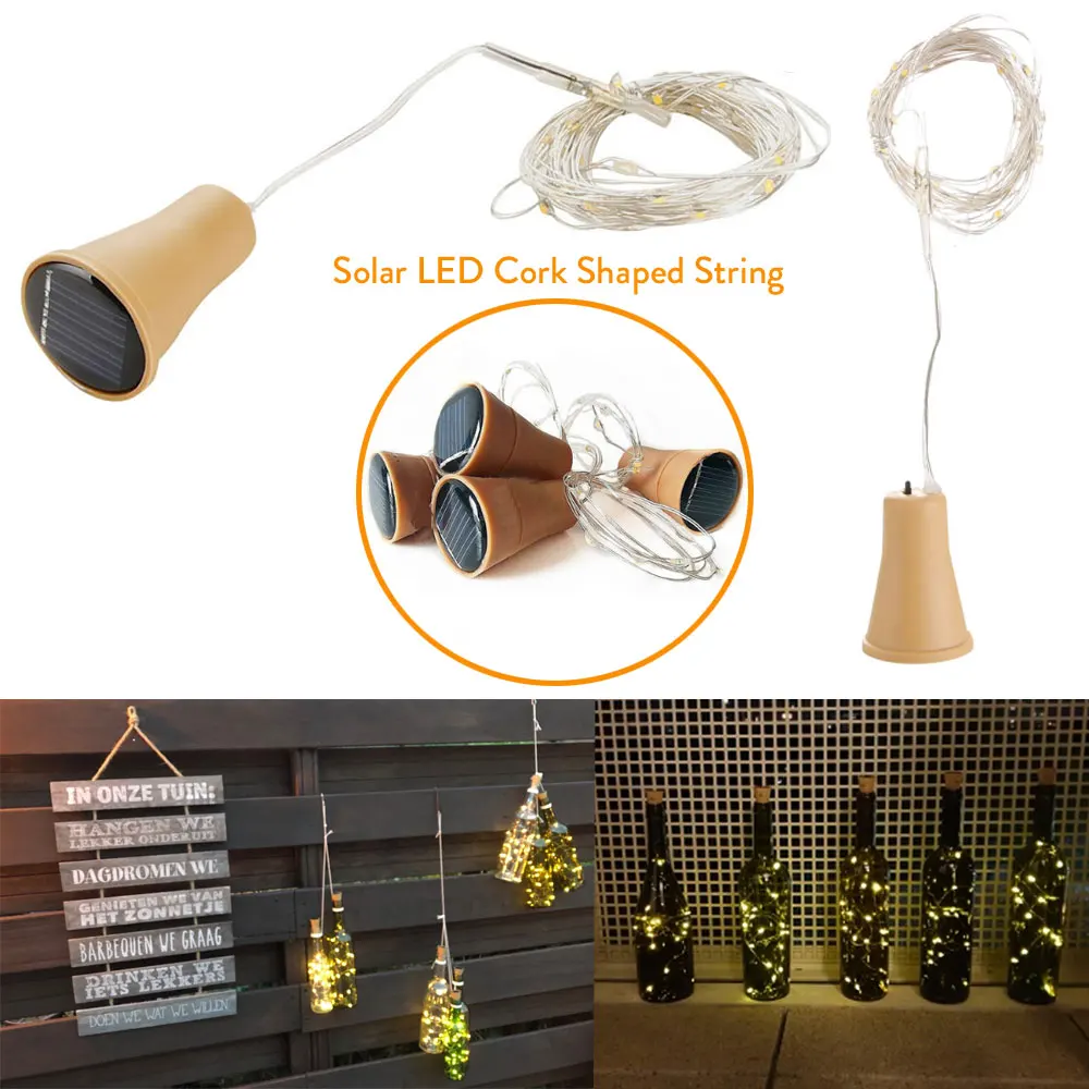 20LEDs Solar Wine Bottle String Light Solar Copper Wire Fairy Lights Cork Shape Christmas Lamp For Wedding Party Garden Decor