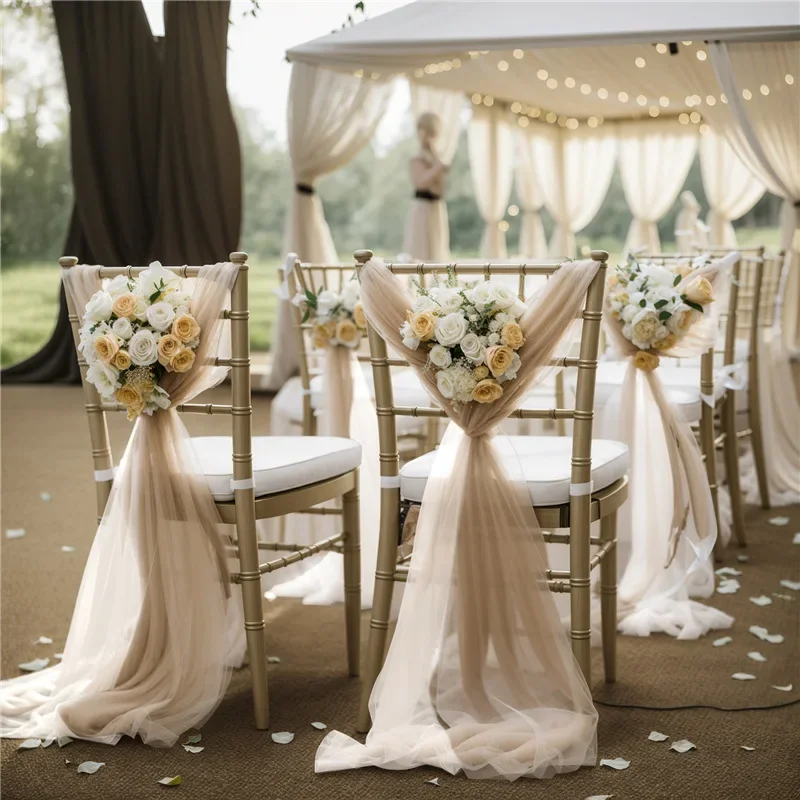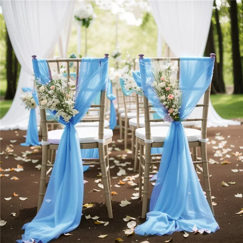 High-quality materials: 100% Polyester. It's sheer & soft chiffon-like fabric. It marks your aisle and creates a complete landscape even without extra addition, adding a romantic & flowy aesthetic to the ceremony.