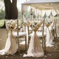 Wedding Chiffon Chair Sashes Cover Aisle Decorations Draping Fabric Wrinkle-Free with Tie 20Pcs Boho White Beige for Party Ceremony Reception Floral Arrangement Banquet Outdoor Decor