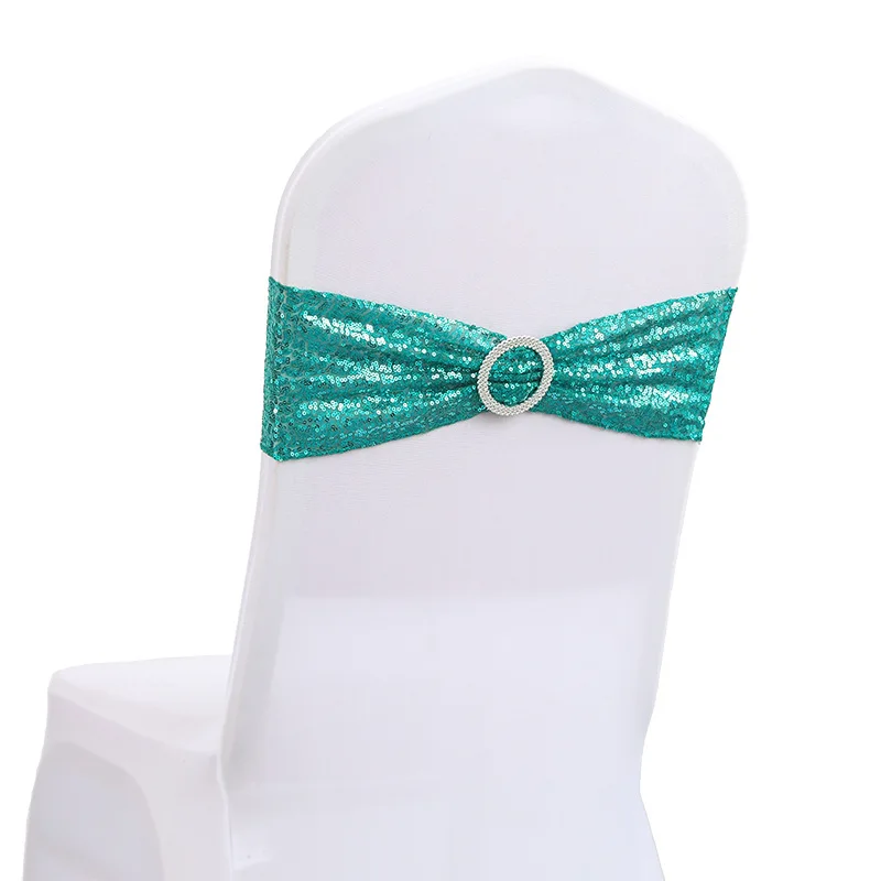 20 Pack Chair Sashes Sequin Stretchy Decorative Bows One-Sided Sequins Decor for Wedding Party Home Chair Cover Sash Decorations