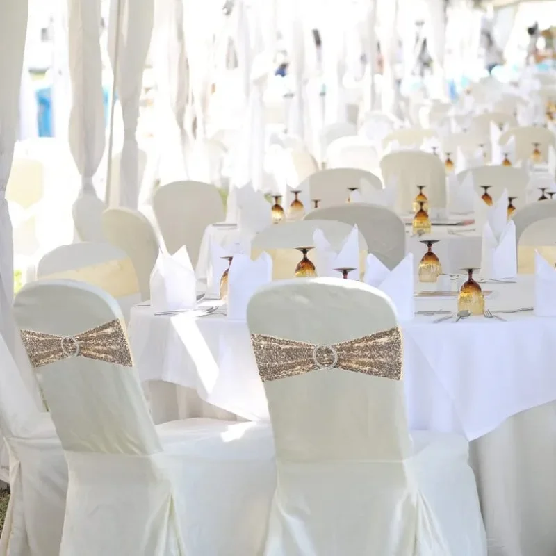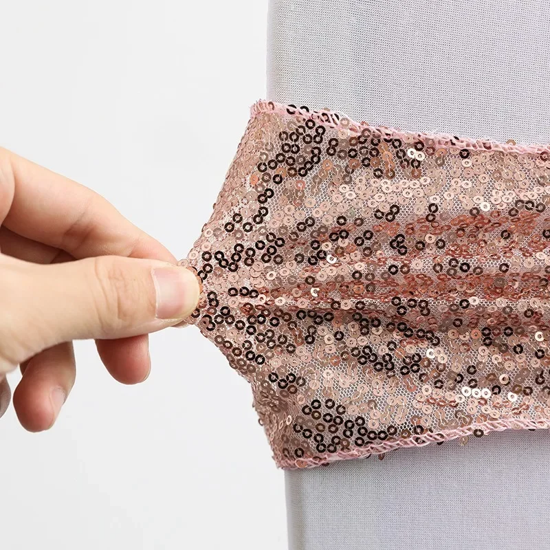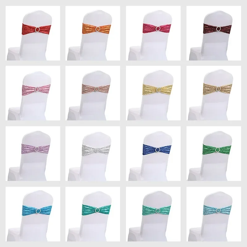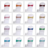20 Pack Chair Sashes Sequin Stretchy Decorative Bows One-Sided Sequins Decor for Wedding Party Home Chair Cover Sash Decorations