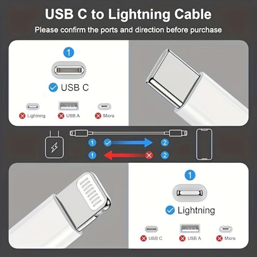 Product Usability: Type-C-Lightning supports for Apple 6-14 series smartphones and for iPads (models before 2019 (inclusive))