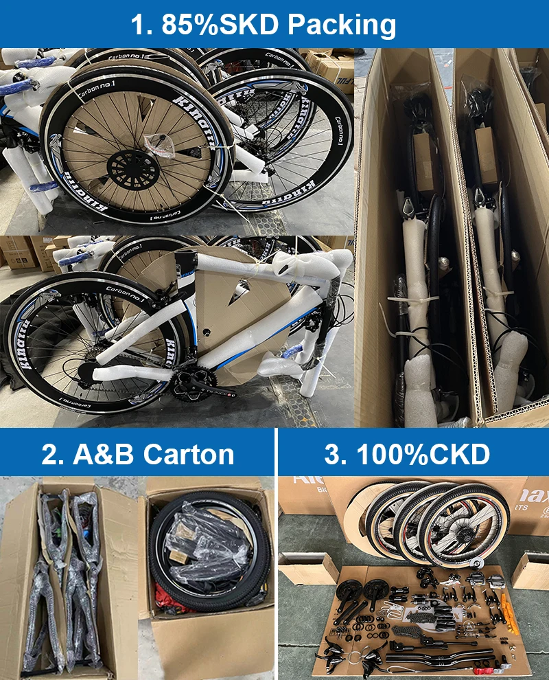 - Road Bike Packing: 85%SKD or CKD100% or AB cartons