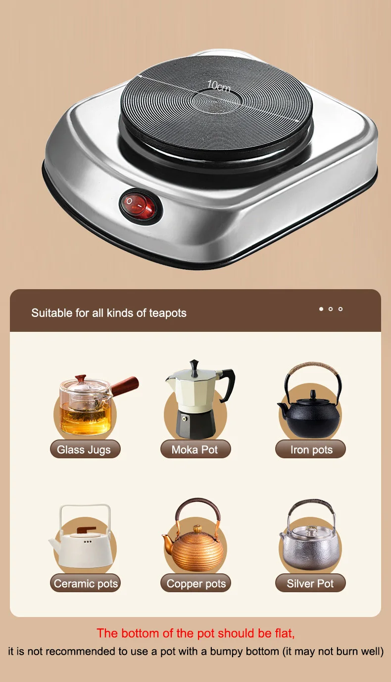 220V Mini Electric stove Portable Tea Coffee Boiler Instant Heating Cast Iron Hot plate Cooking furnace Overheating protection