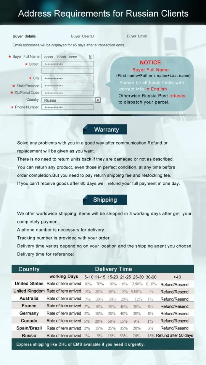 • If merchandise you received is defective or damaged in the long transit, please contact us freely. We will give you a satisfying solution ASAP.