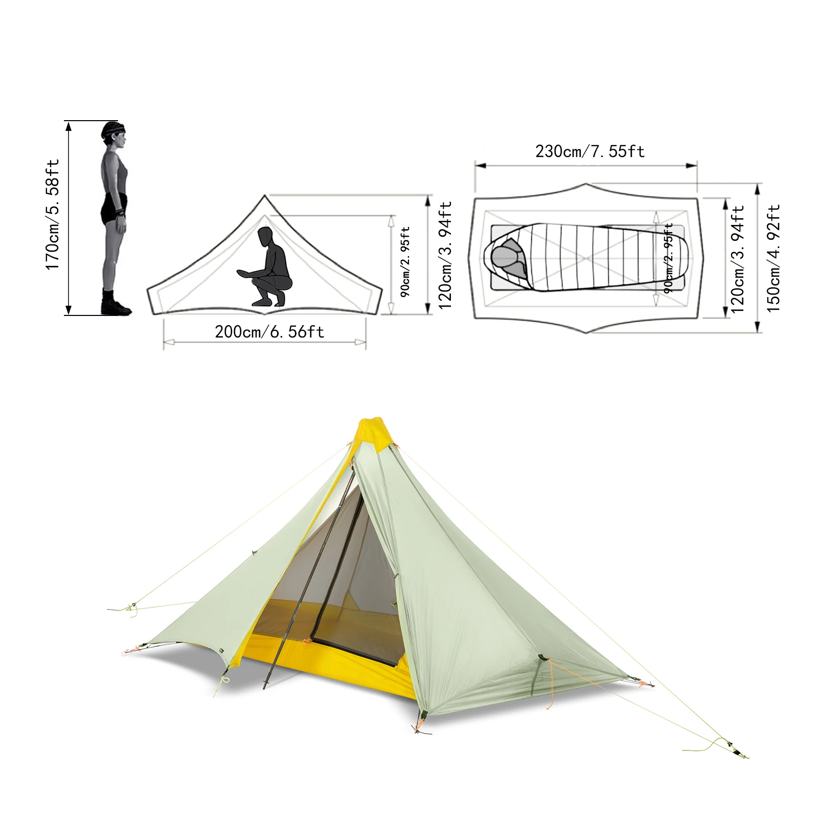 gohantee 1 Pc 230g/260g Ultralight 1 Person Outdoor Camping Tent Summer Mesh Tent 40D 210T Nylon Body Inner Tent Vent Mosquito Net 3-4 Seasons