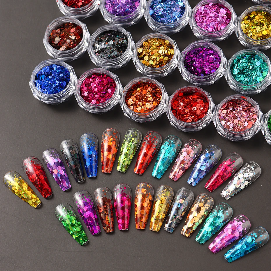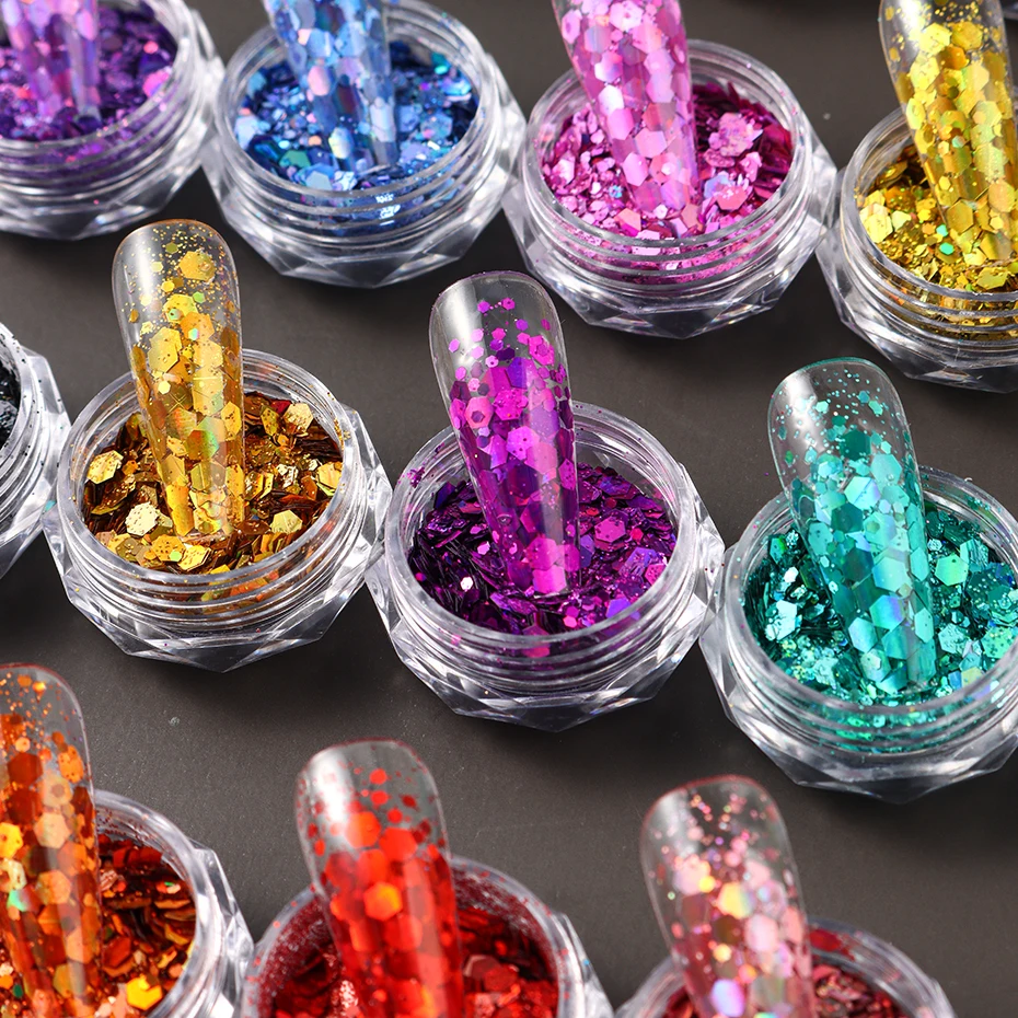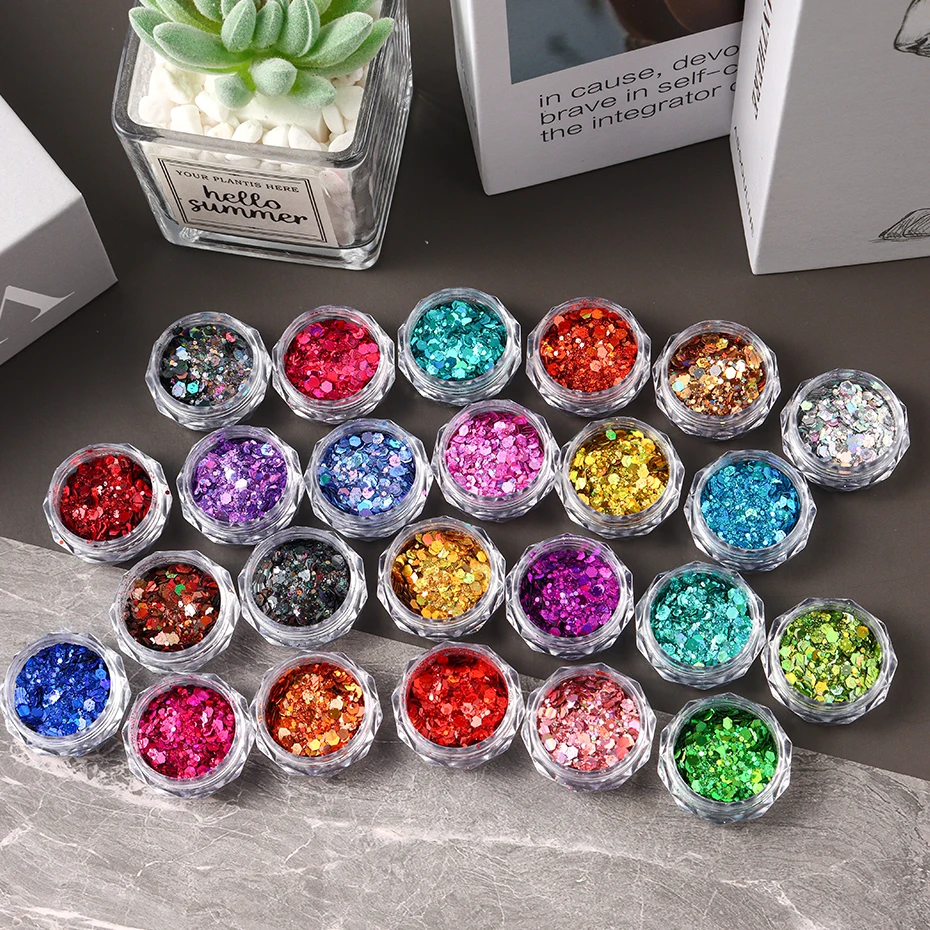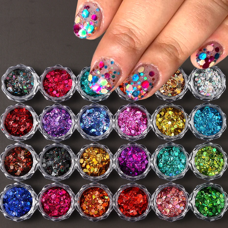 24 Colors Iridescent Nail Art Glitter Sequins Set Holographic ChunkyColorful Sparkly Hexagon Flakes 2024 Summer Nail Sequins