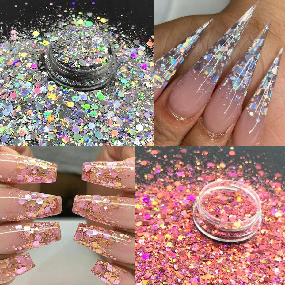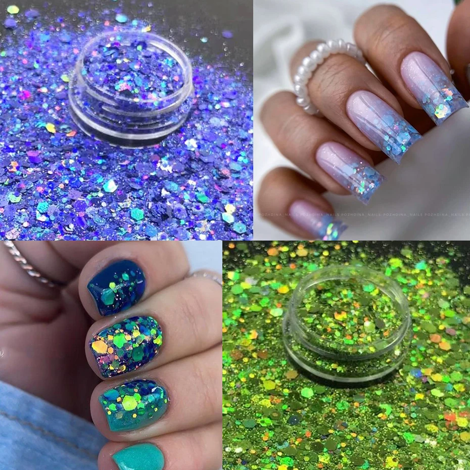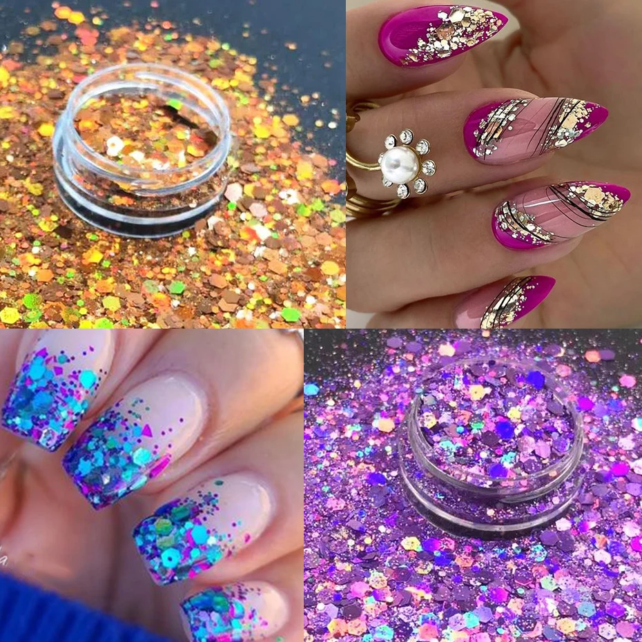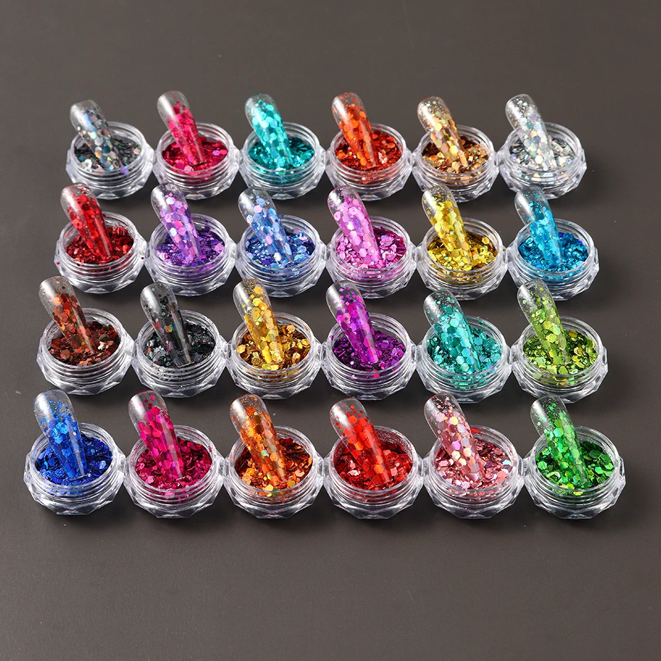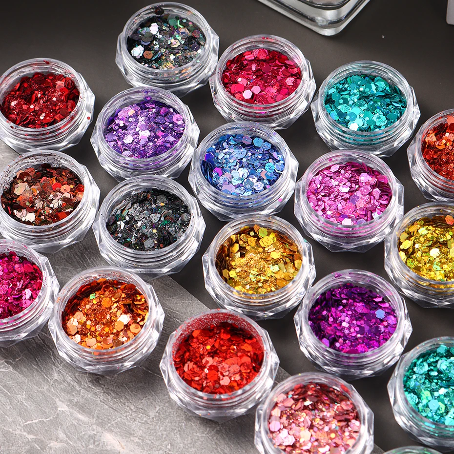 24 Colors Iridescent Nail Art Glitter Sequins Set Holographic ChunkyColorful Sparkly Hexagon Flakes 2024 Summer Nail Sequins
