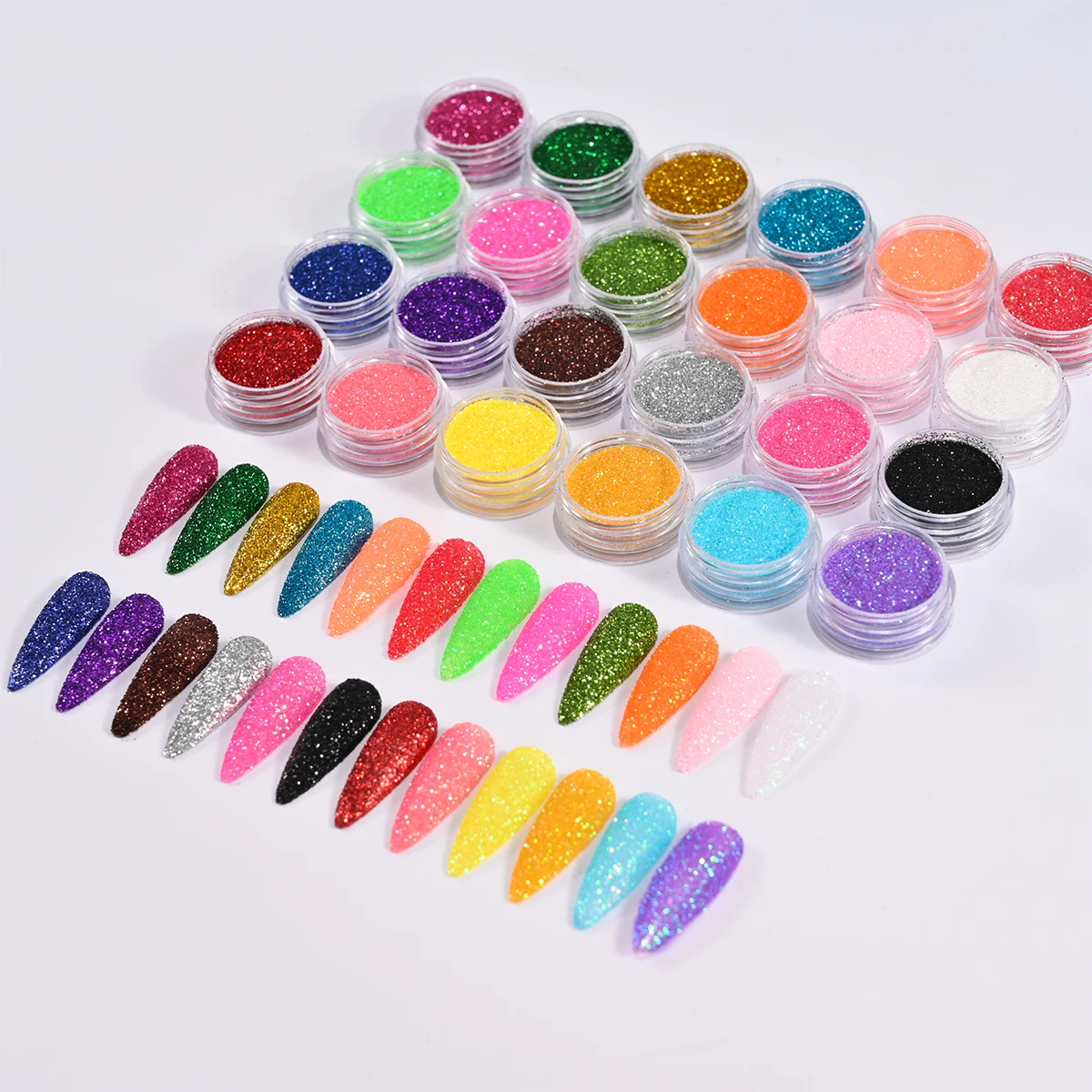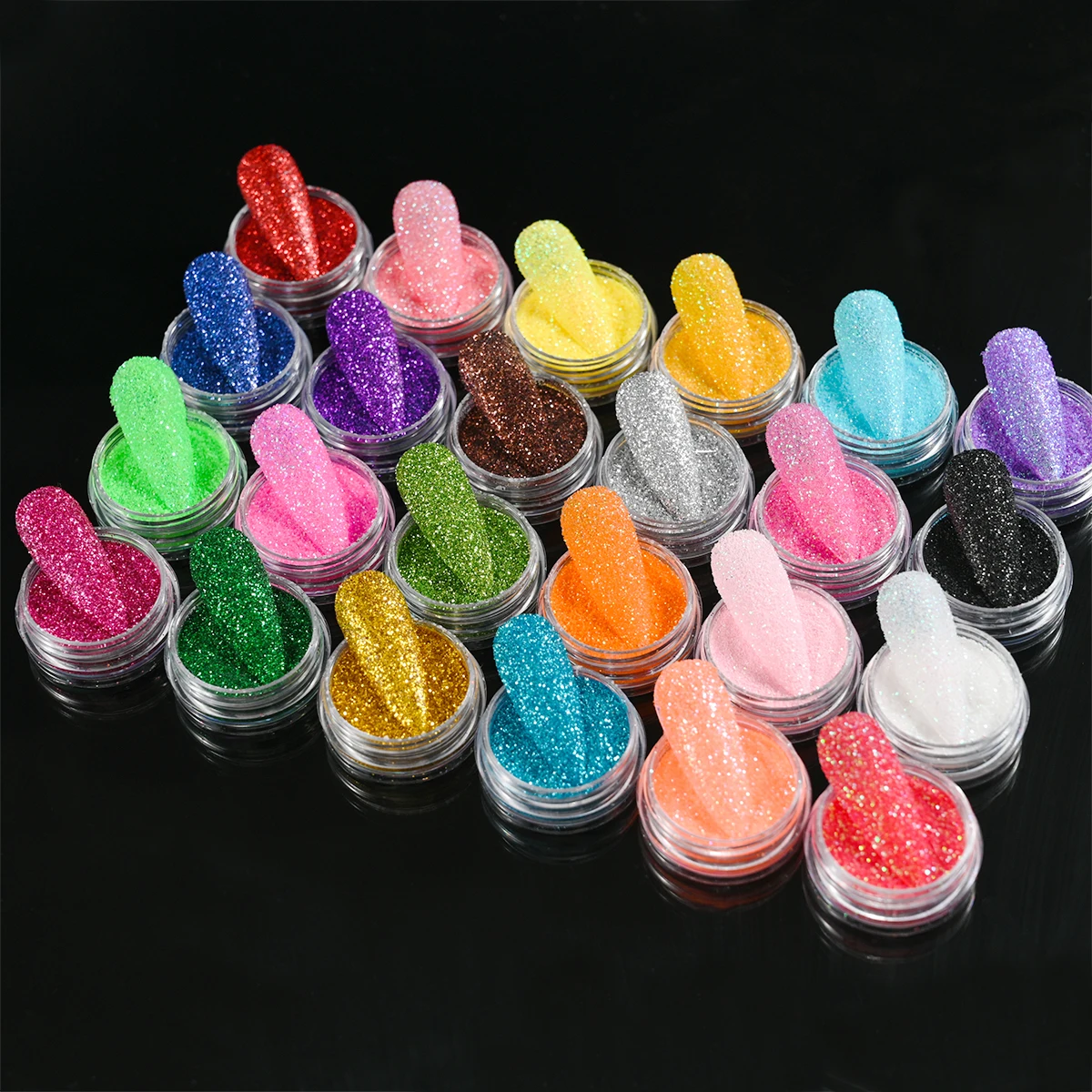 24 Colors Set Glitter Sugar Sand Powder for Nails Shiny Iridescent Colorful Chrome Pigment Dust Crystal Diamond Manicure Decor *