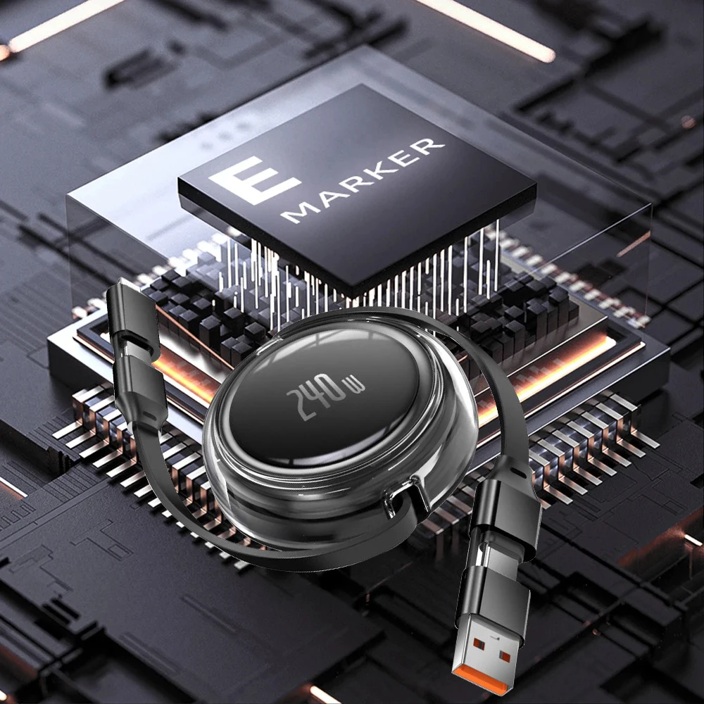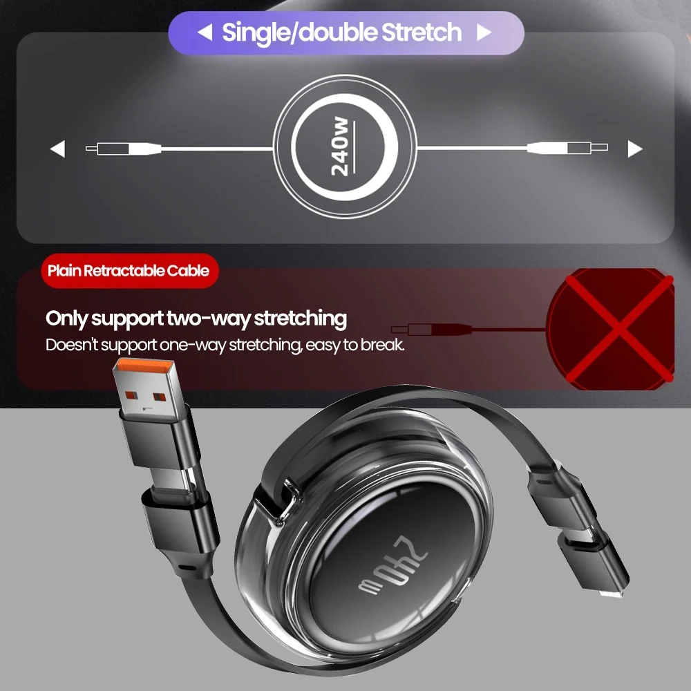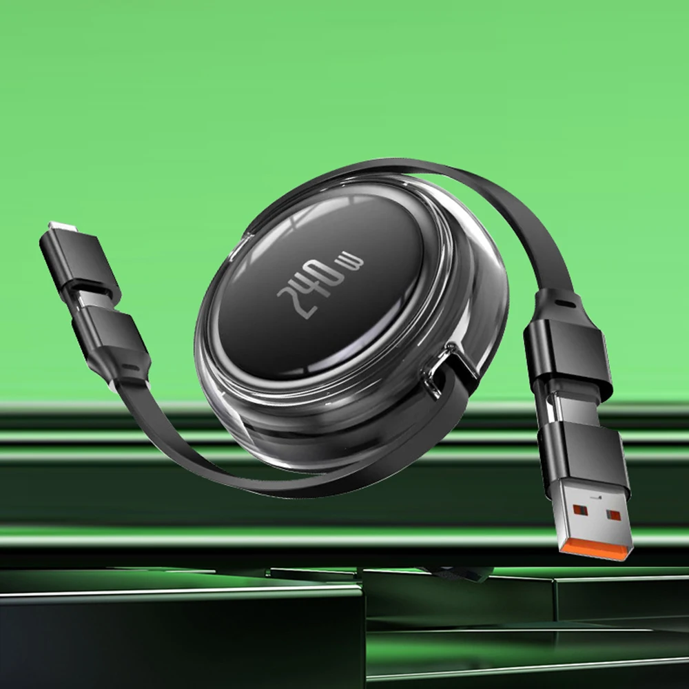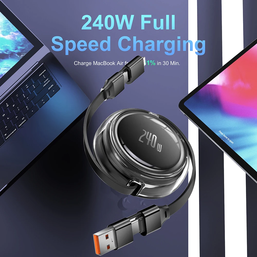 240W 4 in 1 Fast USB C Cable for iPhone 16/15 Retractable Portable USB Type C Charger Cable For MacBook Pro Samsung Laptops