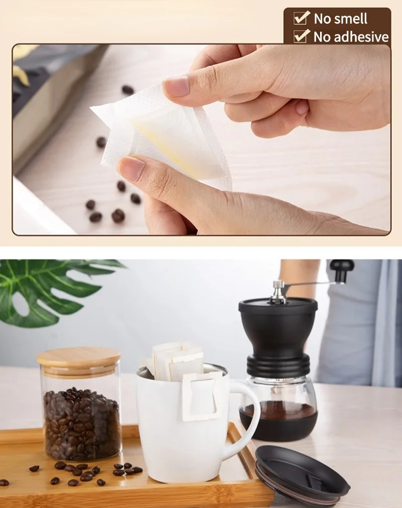 ⭐️【Safe to use】 This portable coffee filter bag is made of non-woven fabric imported, without any chemicals and adhesives. No smell, the taste of extracted coffee is mellow.