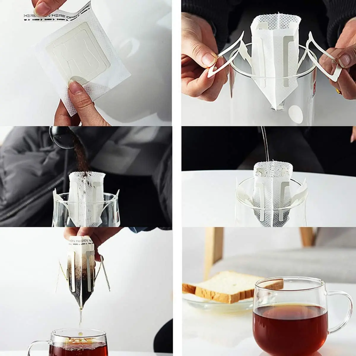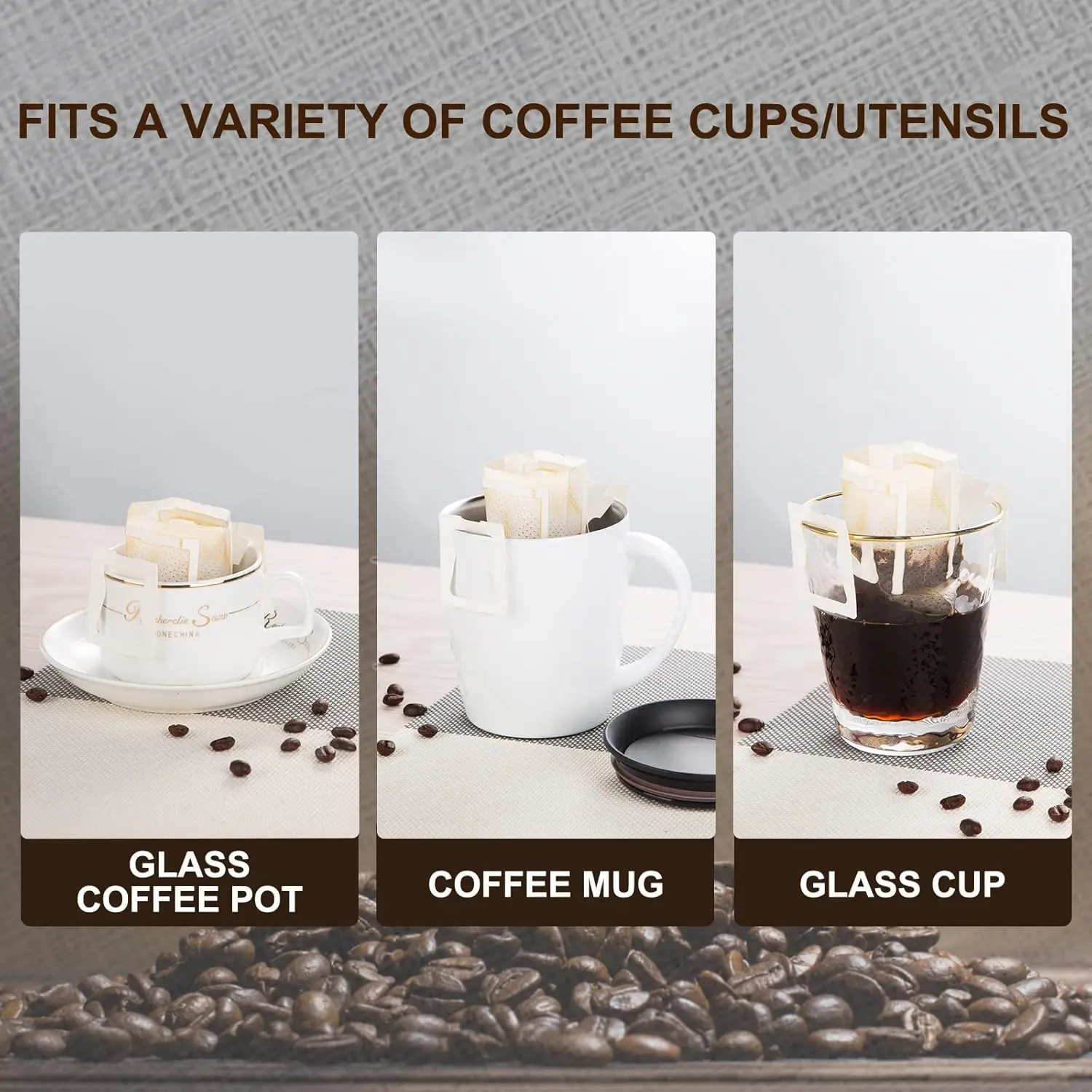 ⭐️【Thicker Material】The material of this portable pour over coffee filter bag is made of thick material, not easy to tear. The edge of the disposable drip coffee filter bag is sealed with ultrasonic high-frequency, which is tight and not easy to crack.